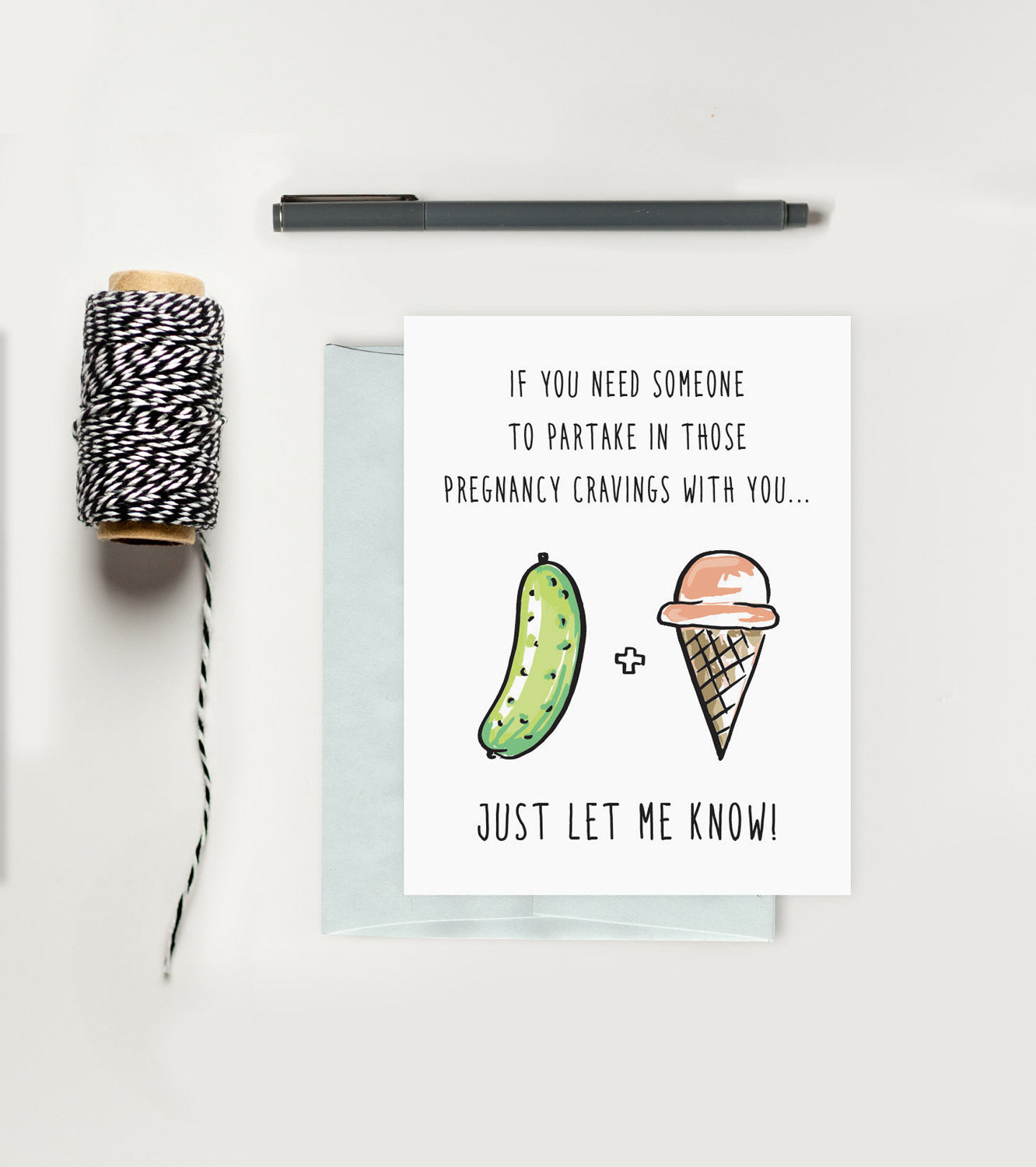 Card Reads: If you need someone to partake in those pregnancy cravings with you...Just let me know!