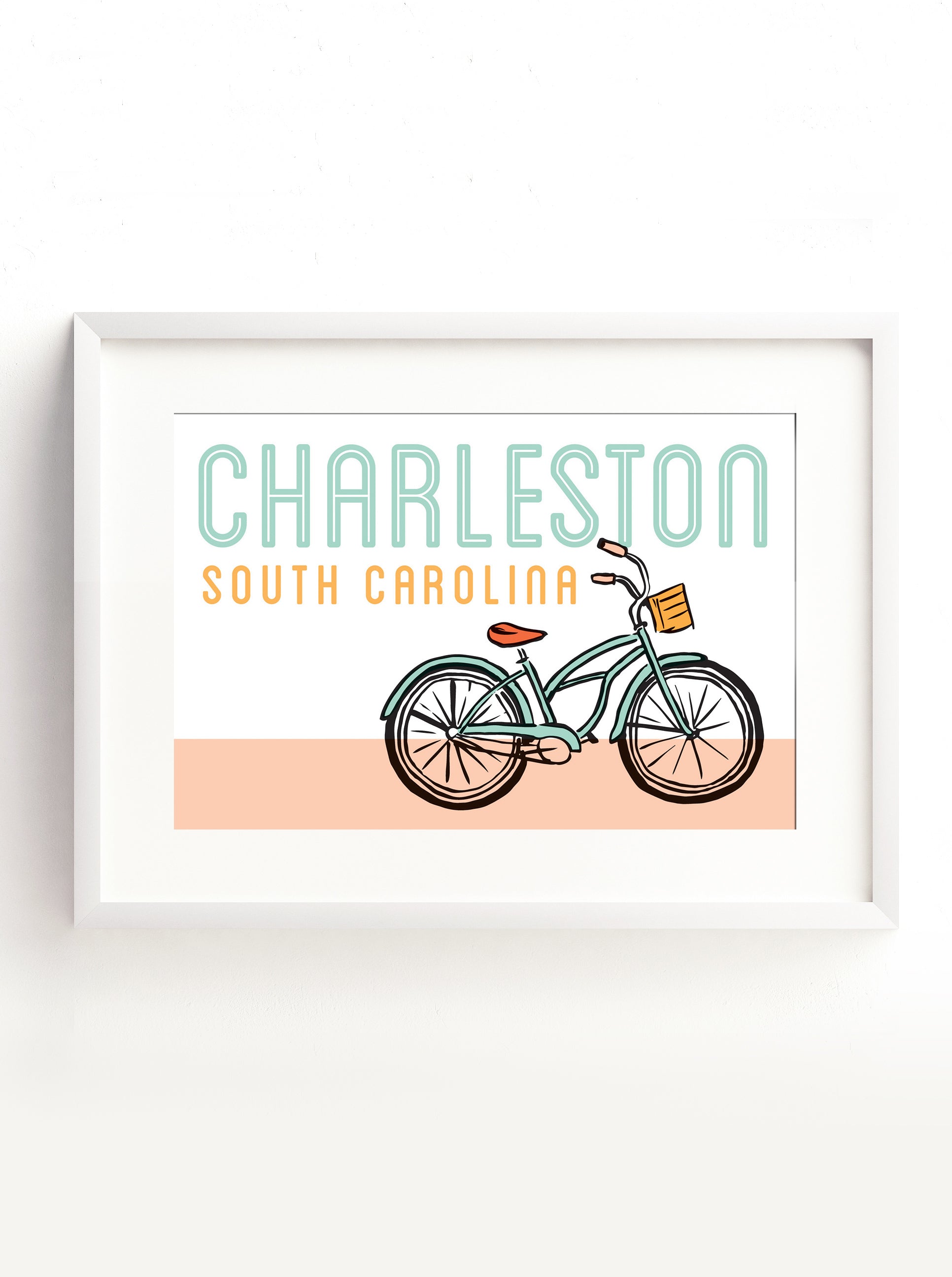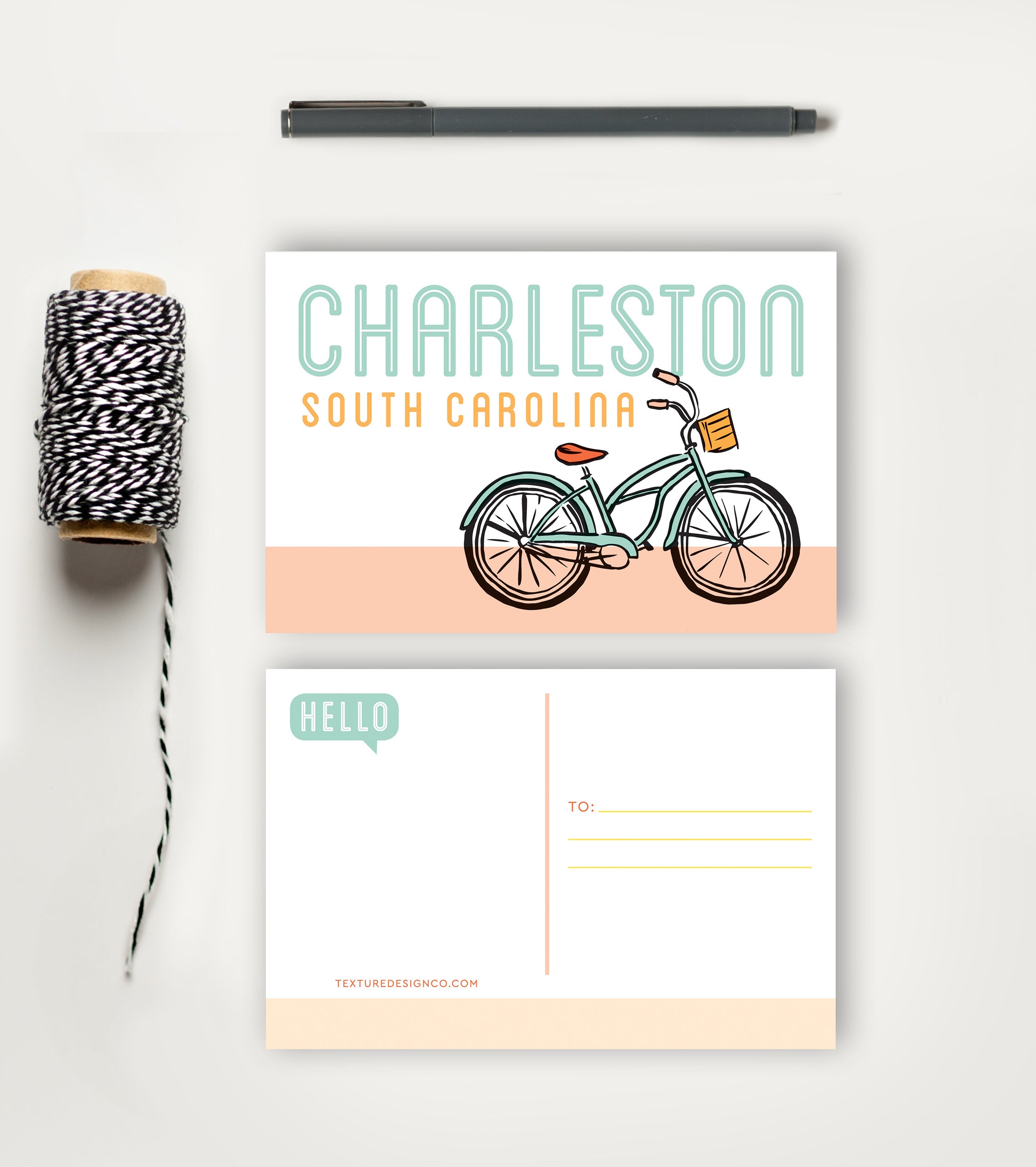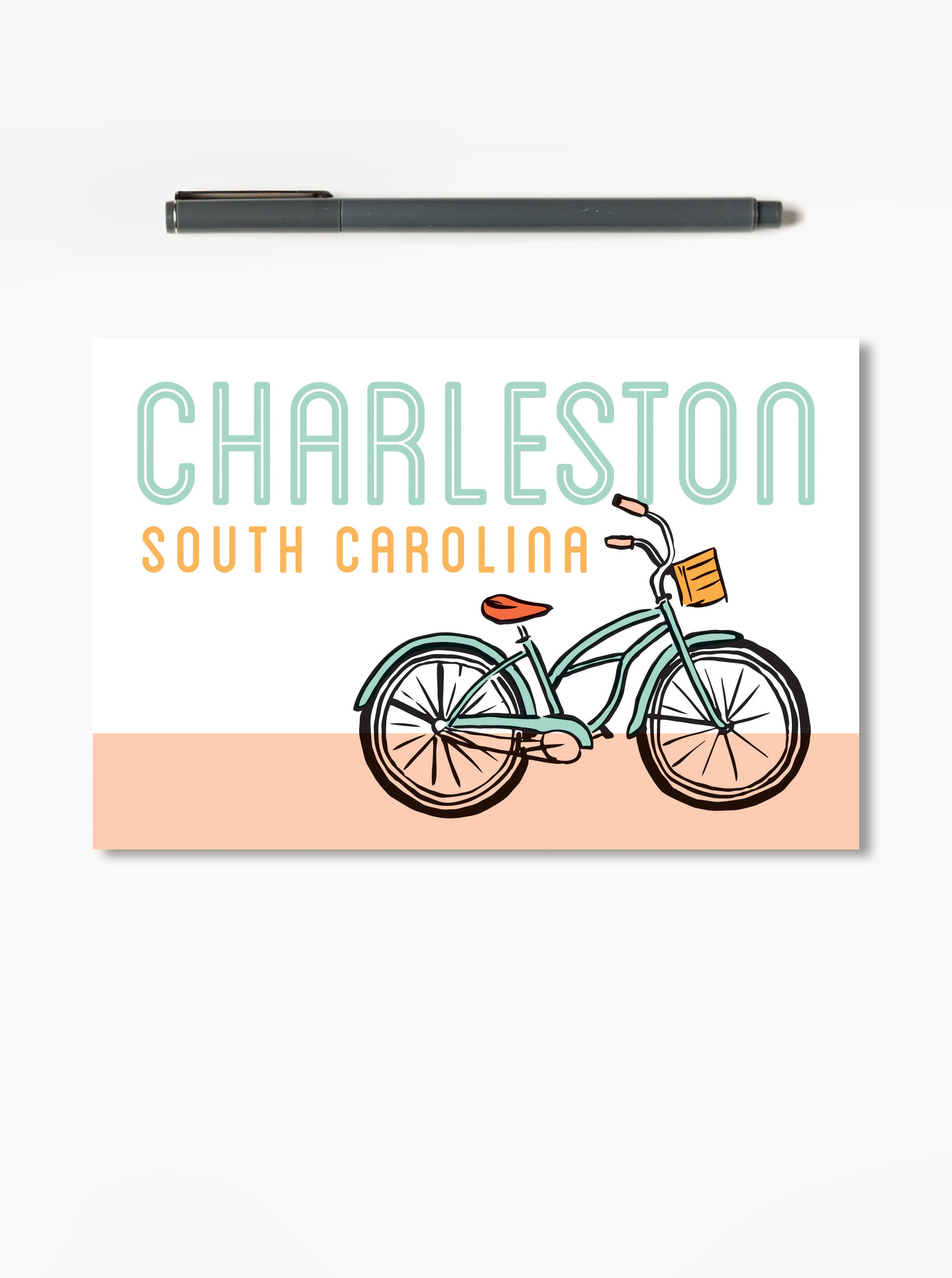 4" x 6" Postcard featuring a beach cruiser bike with a cheery, beachy color palette.