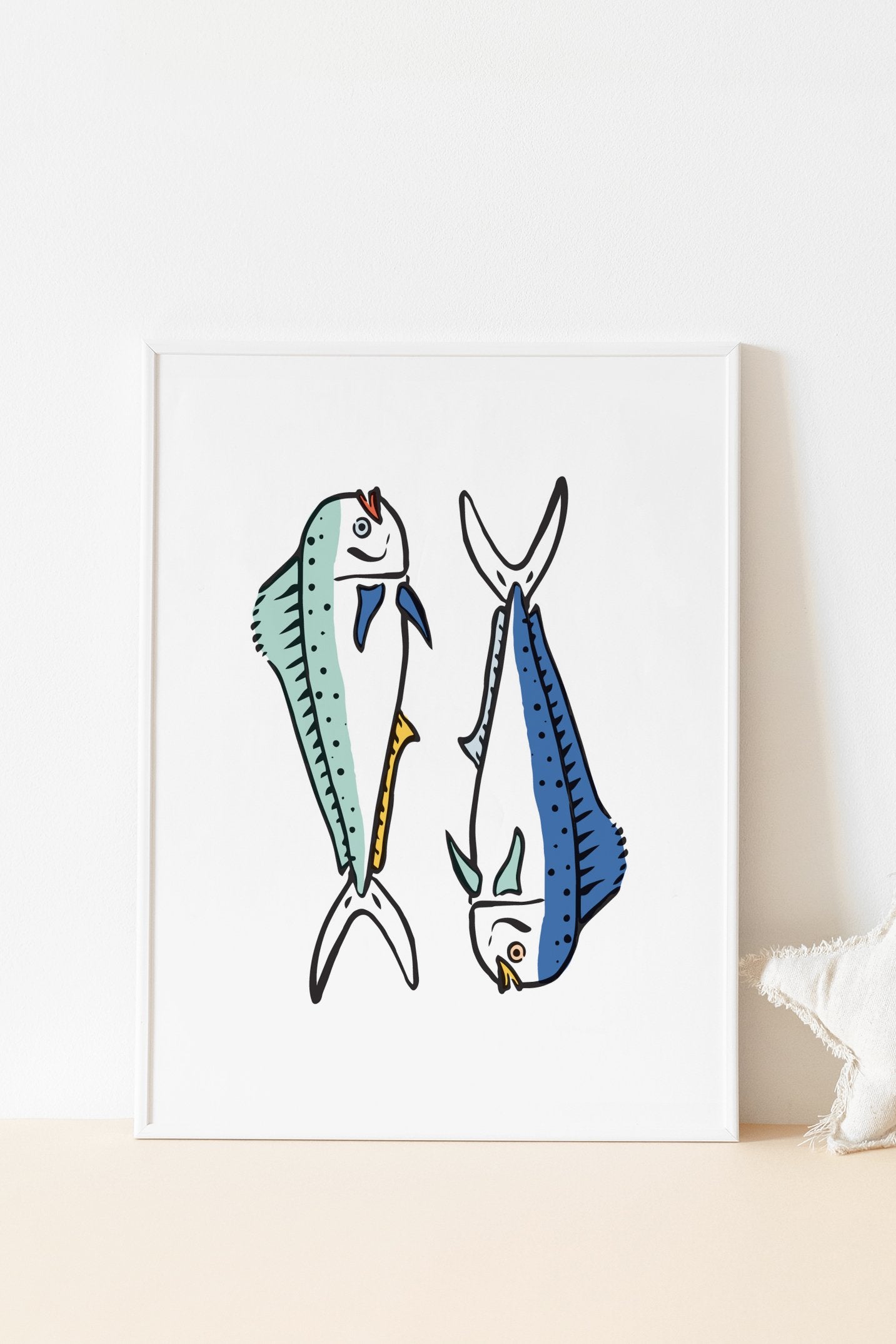 Need a modern and fresh art print for your boy's room or coastal themed house? This fun, bold print features the cutest pair of dolphin fish you've ever seen!