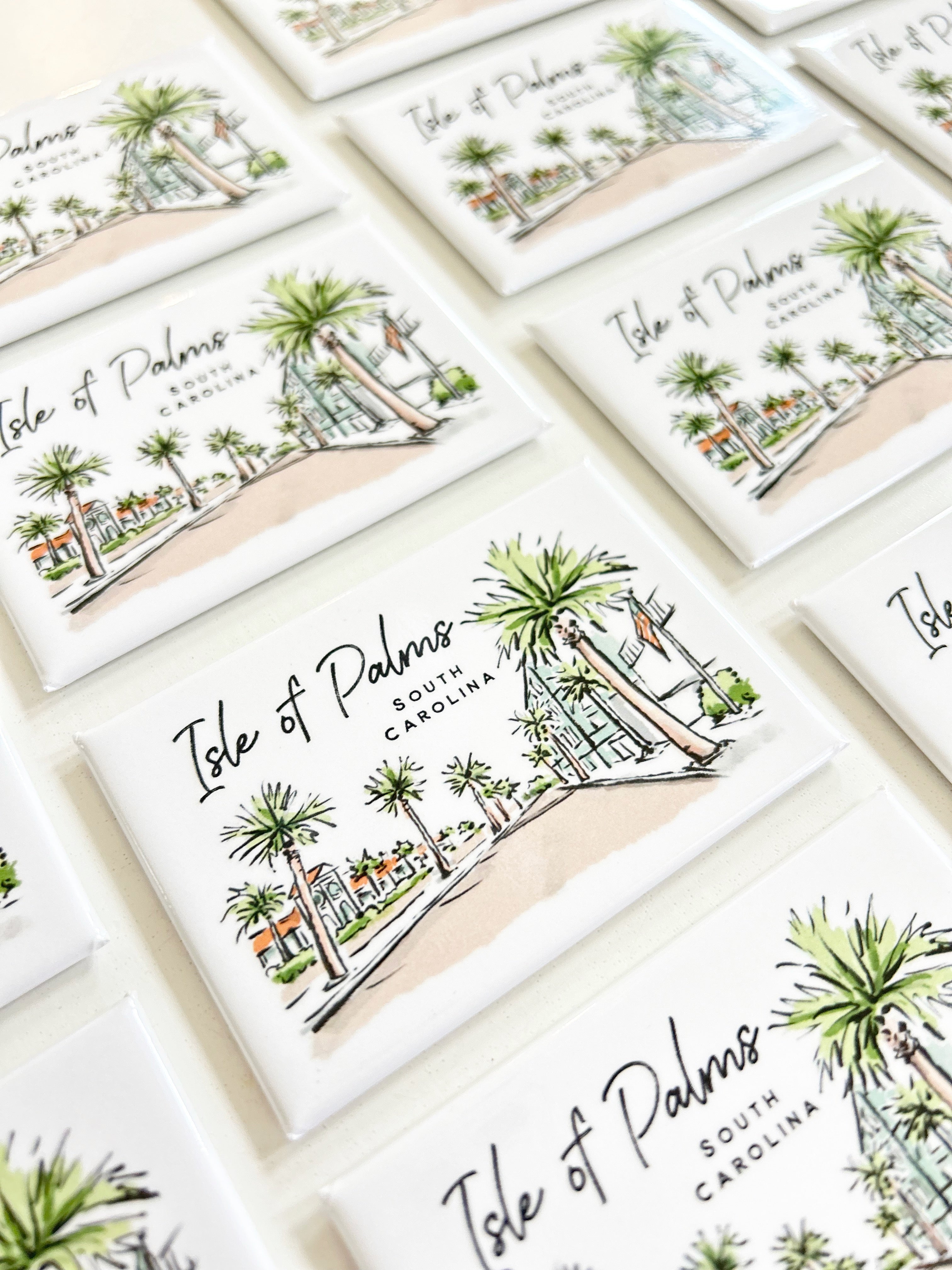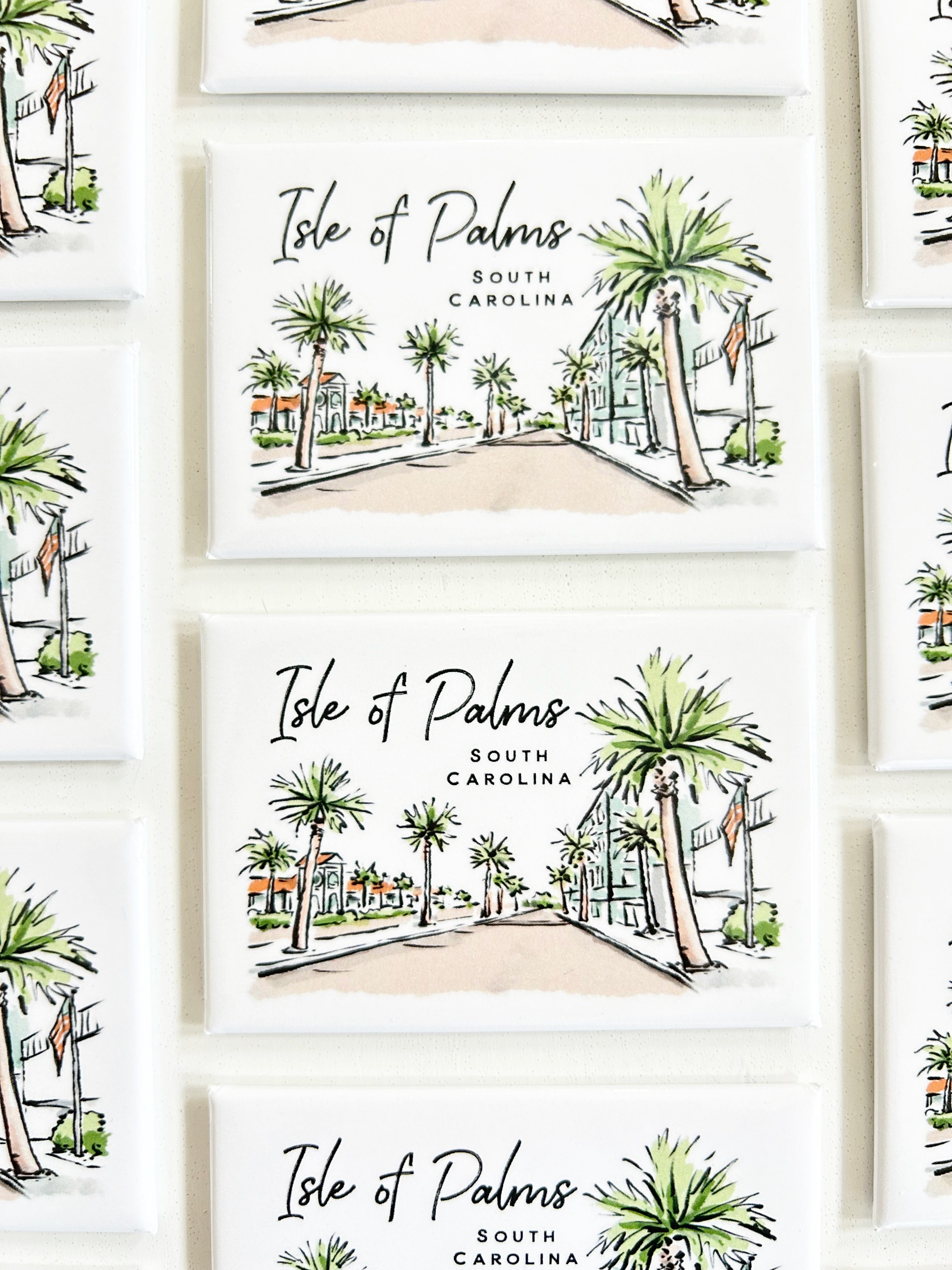 The Isle of Palms magnet includes a colorful scene of Ocean Blvd. Cheerful and charming, use this magnet to commemorate an IOP trip or gift to a friend.