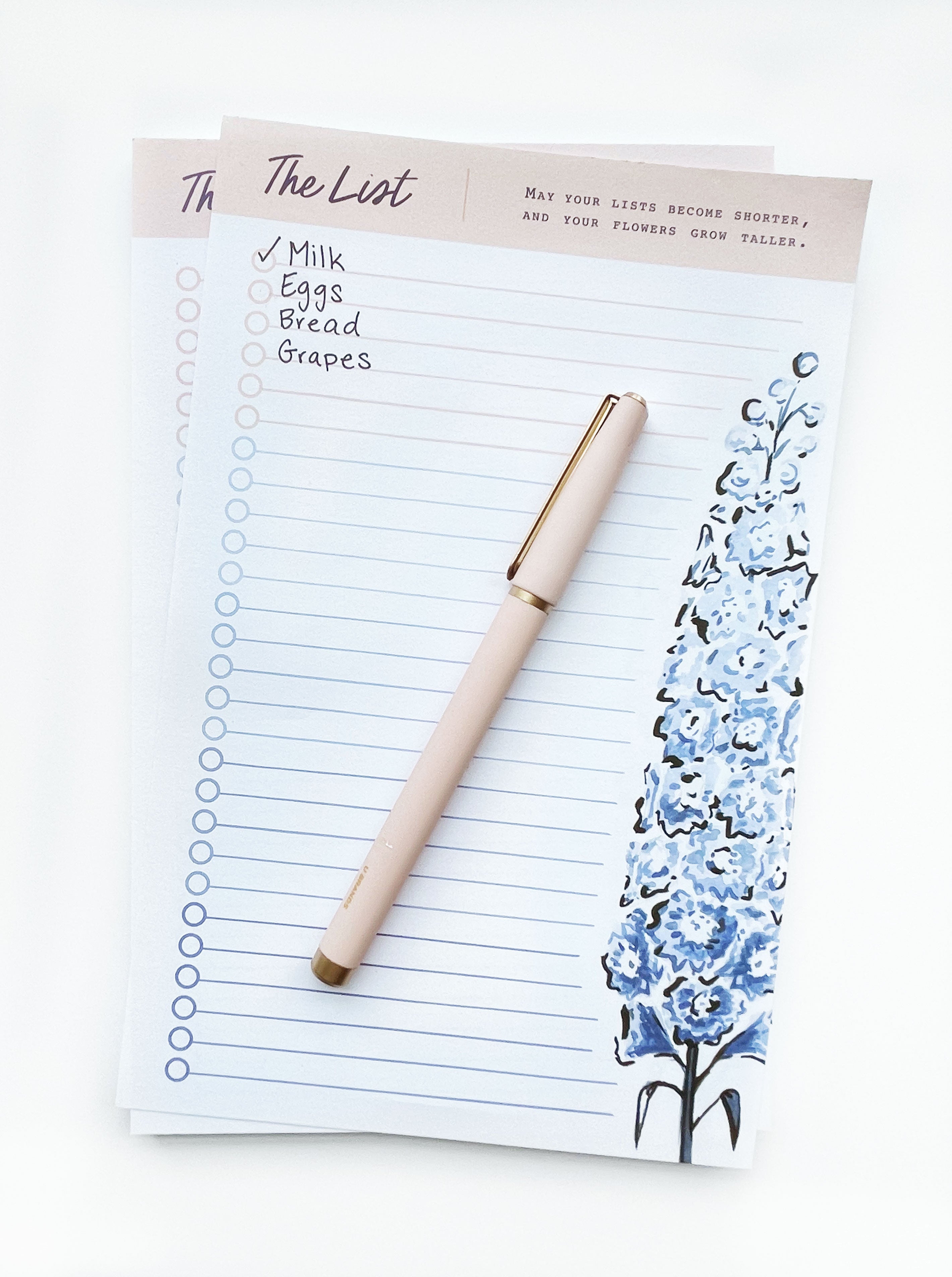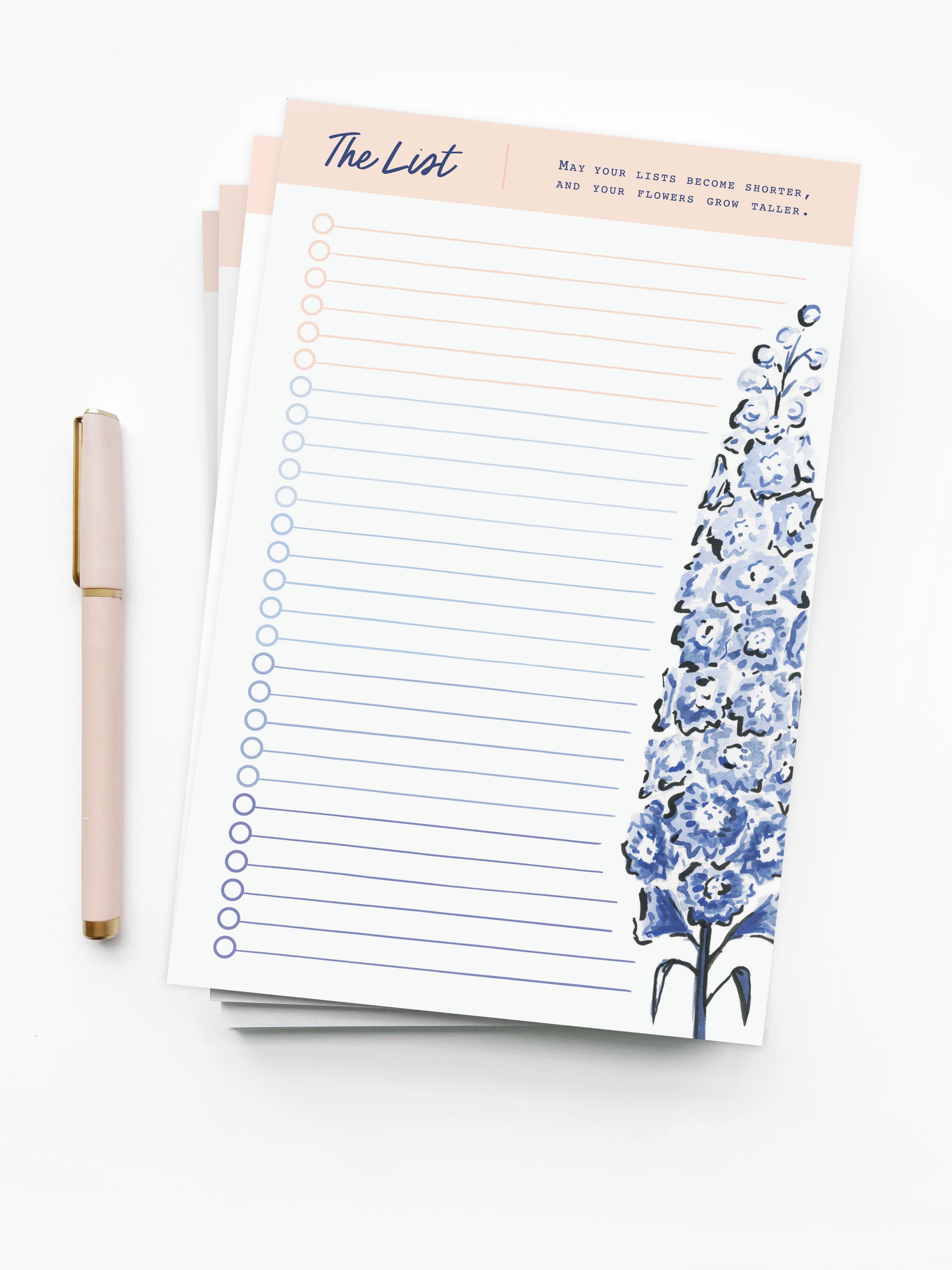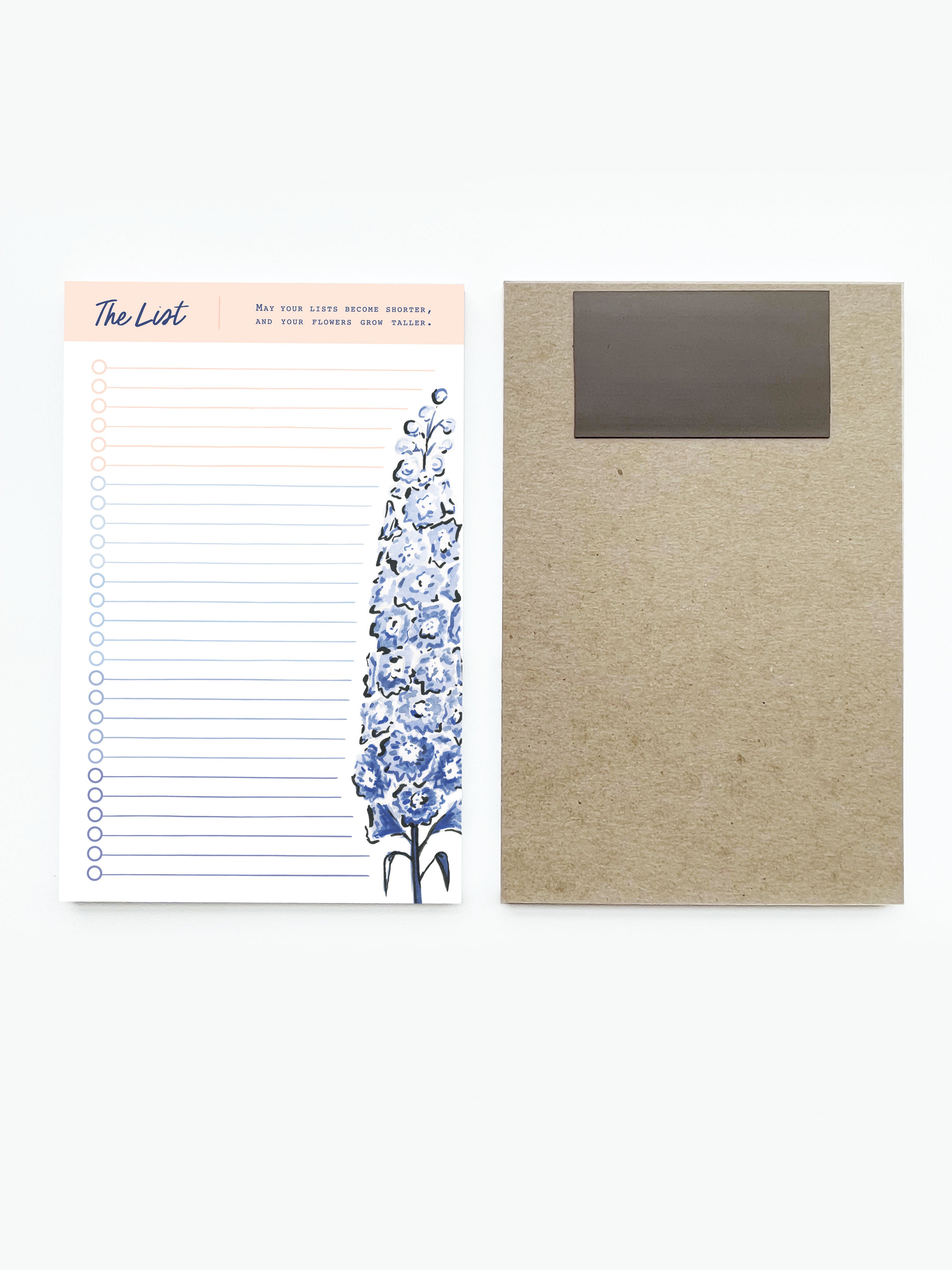 Every to-do list will look better on this floral notepad! Featuring a watercolor delphinium flower, these notepads are sure to put a smile on your face. They also make great gifts! Using the magnet on the back, stick these cuties on your fridge for easy access.