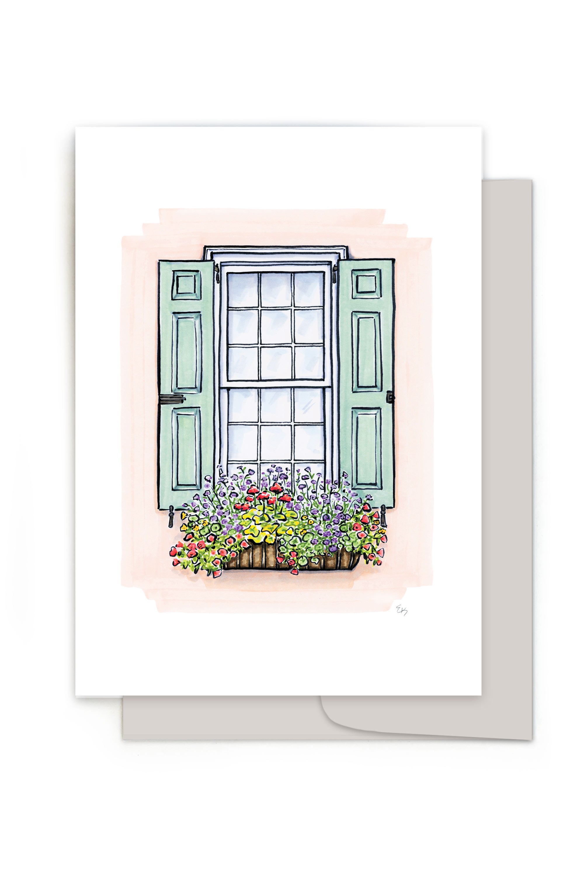 Single card featuring a pink house with mint shutters. See other listings for additional house styles.