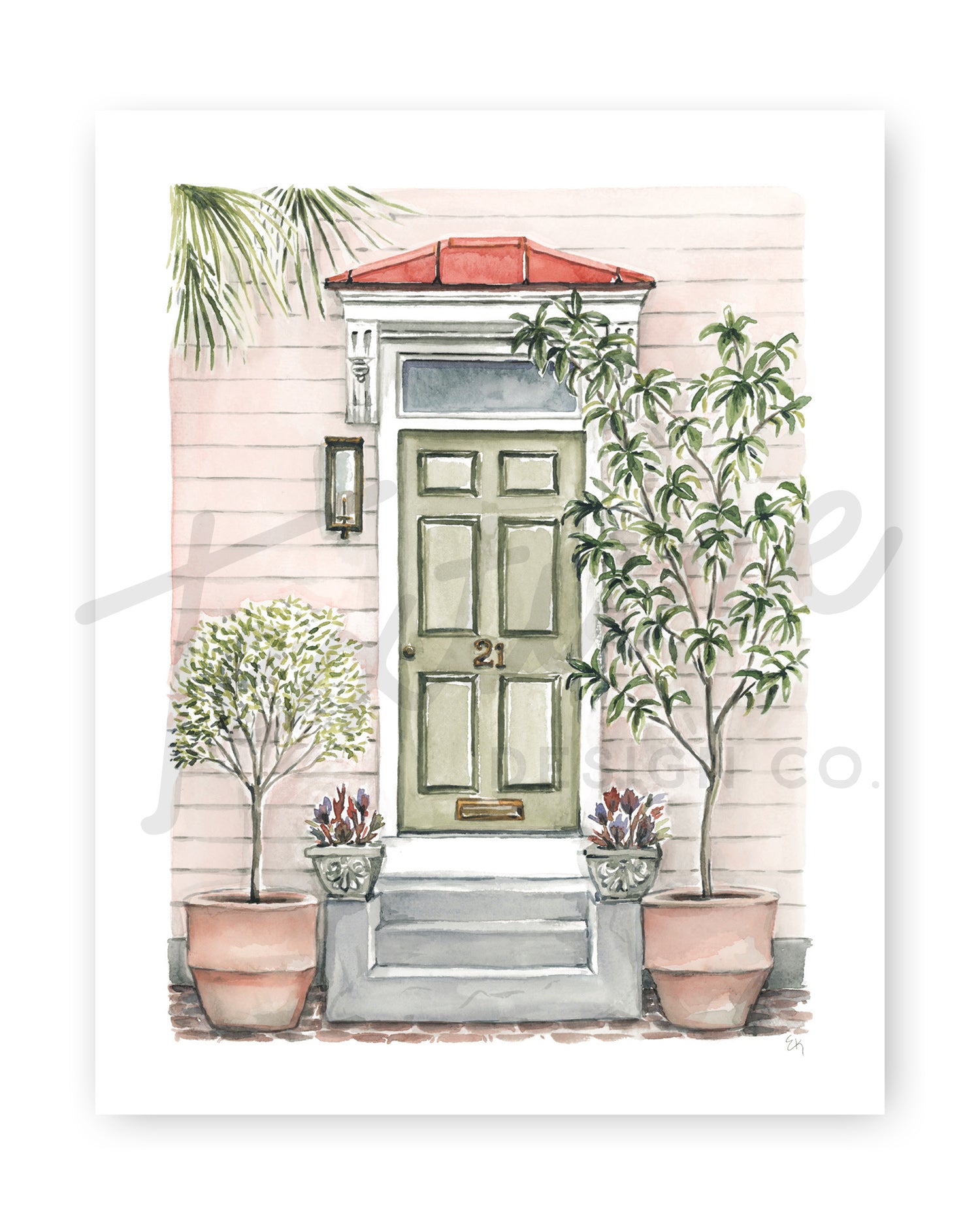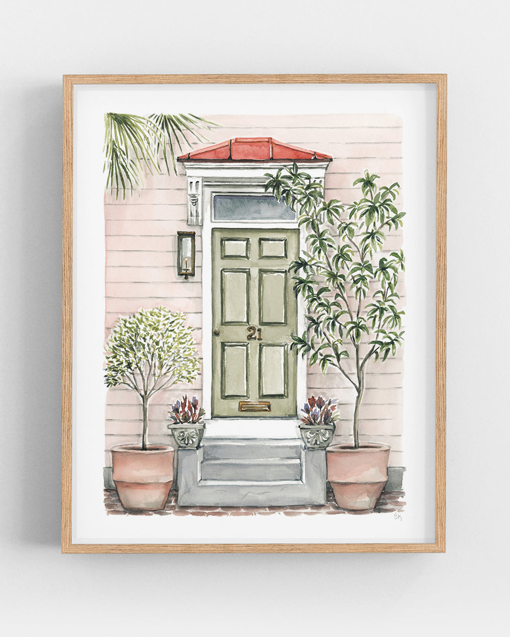 Inspired by the east coast, the art print showcases an intricately painted timeless front door.