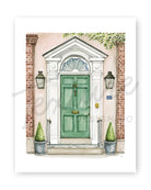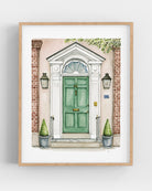 Inspired by the architectural design of the Lowcountry, the art print showcases an intricately detailed timeless front door from Charleston, SC. The classic green door draws the eye against the neoclassical white door frame and elaborately designed transom window.