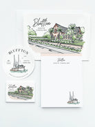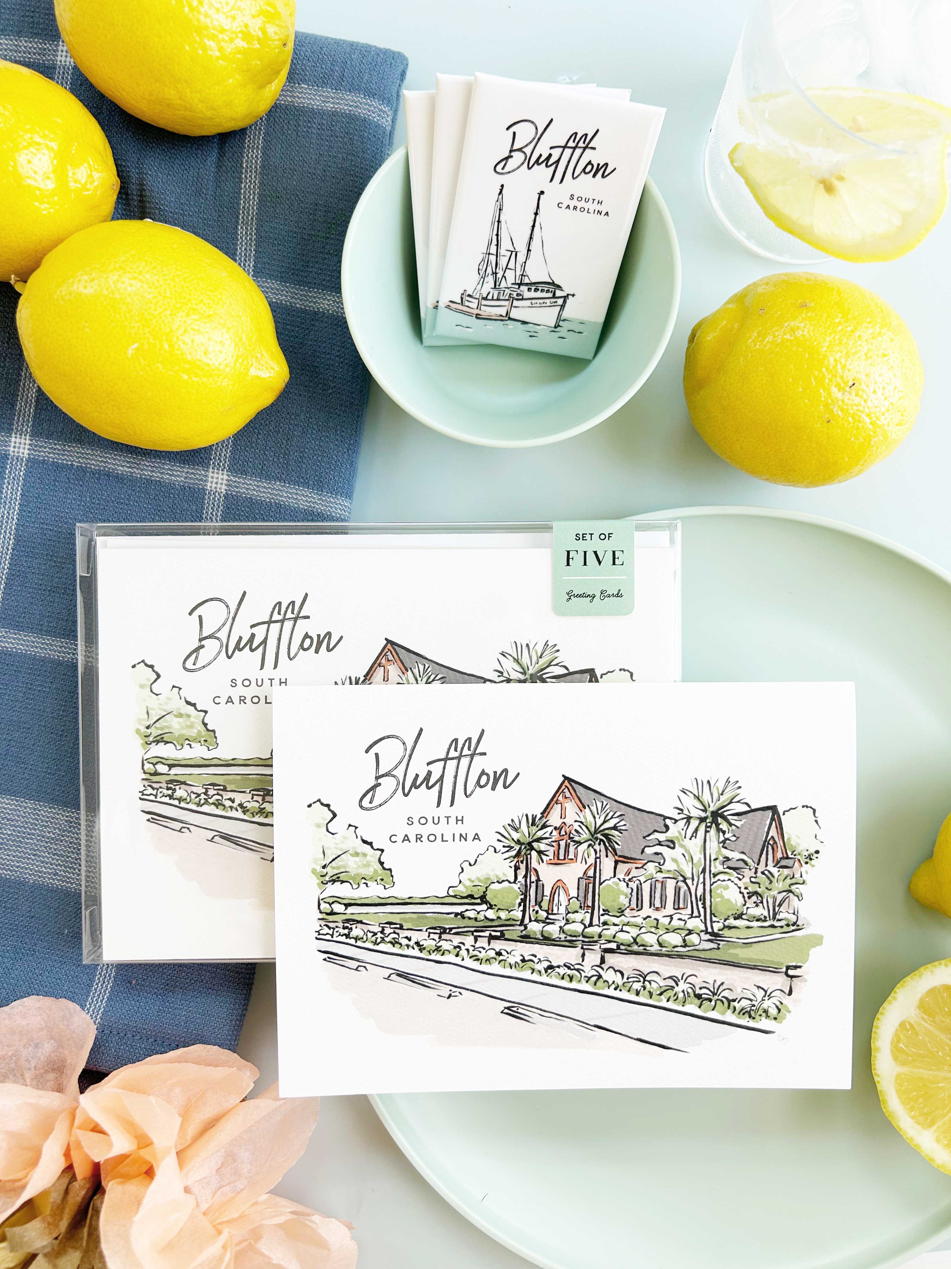 The Bluffton greeting card includes a colorful scene of Calhoun Street. Cheerful and charming, the Bluffton Greeting Card will inspire you to send all of your people a hand-written note. The felt texture of the paper mixed with the lovely architectural illustration make this folded card POP! The 5x7 size is ideal for framing. Grab one to send or buy a box for you and a friend.
