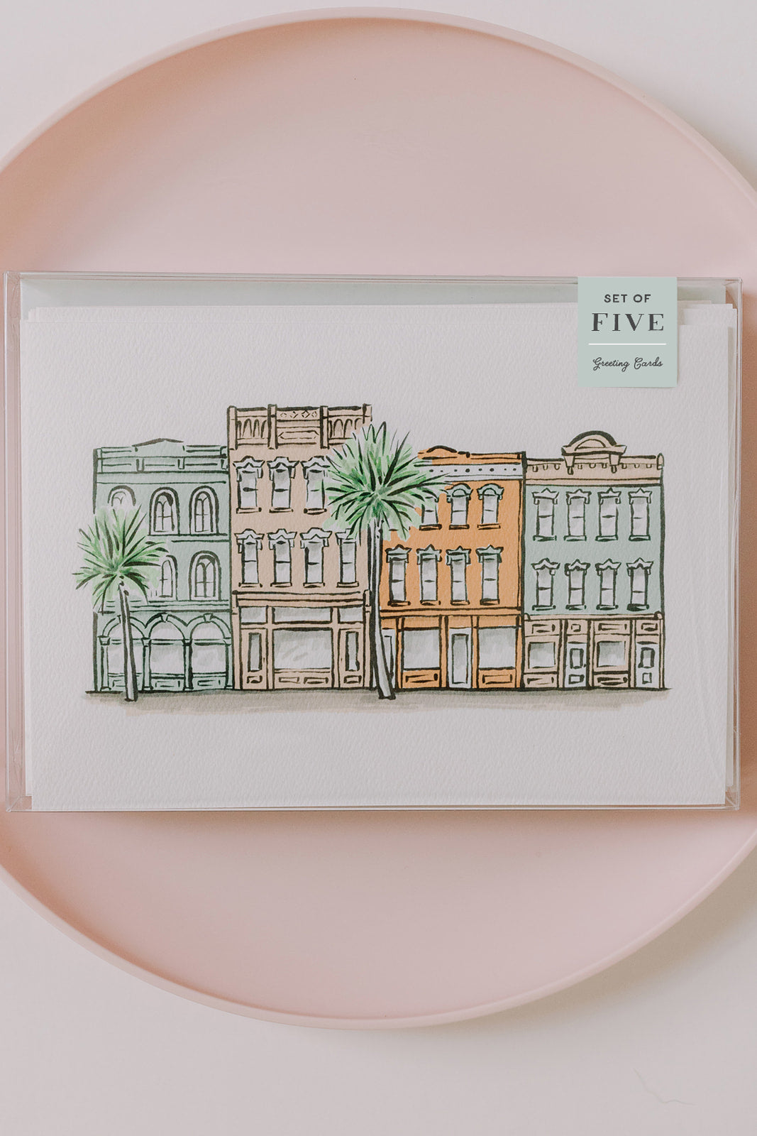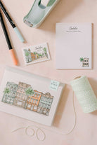 The delicious colors of the Downtown Greeting Card will inspire you to send all of your people a hand-written note! The felt texture of the paper mixed with the lovely architectural illustration make this folded card POP! The 5x7 size also makes it great for framing.