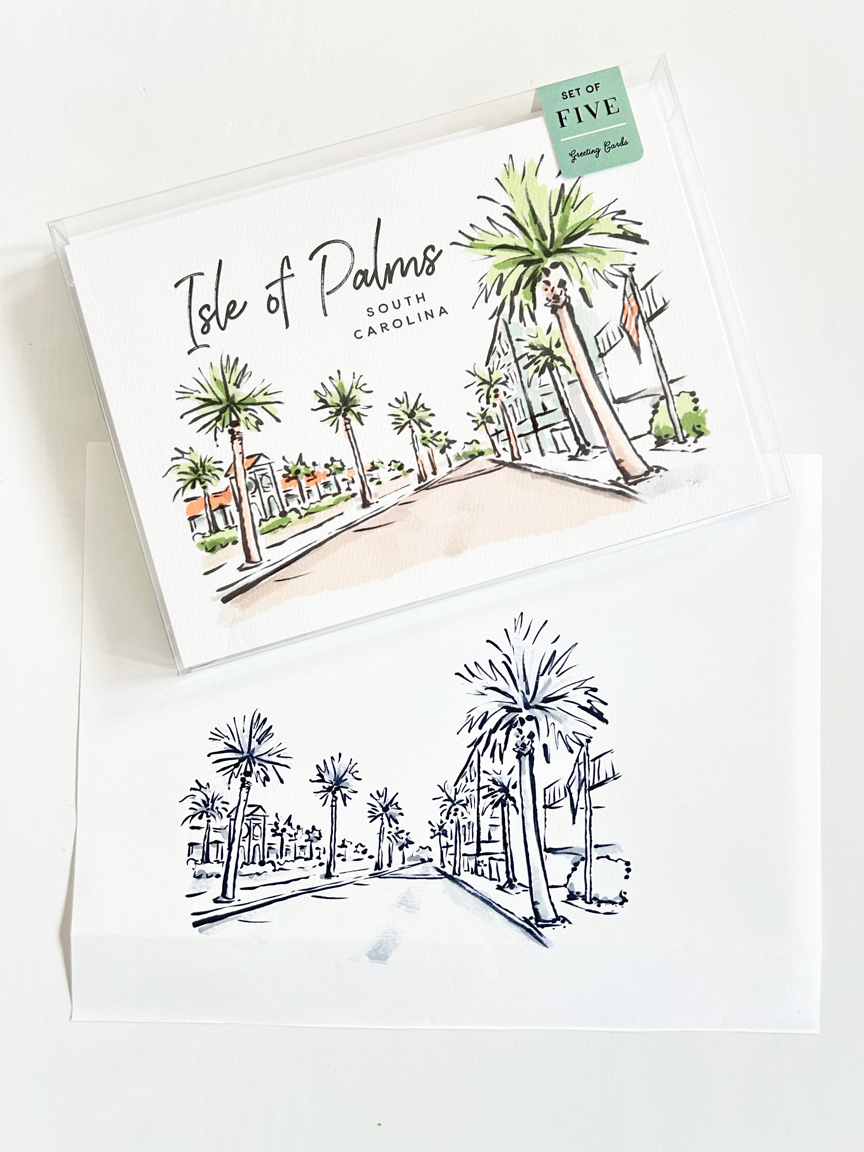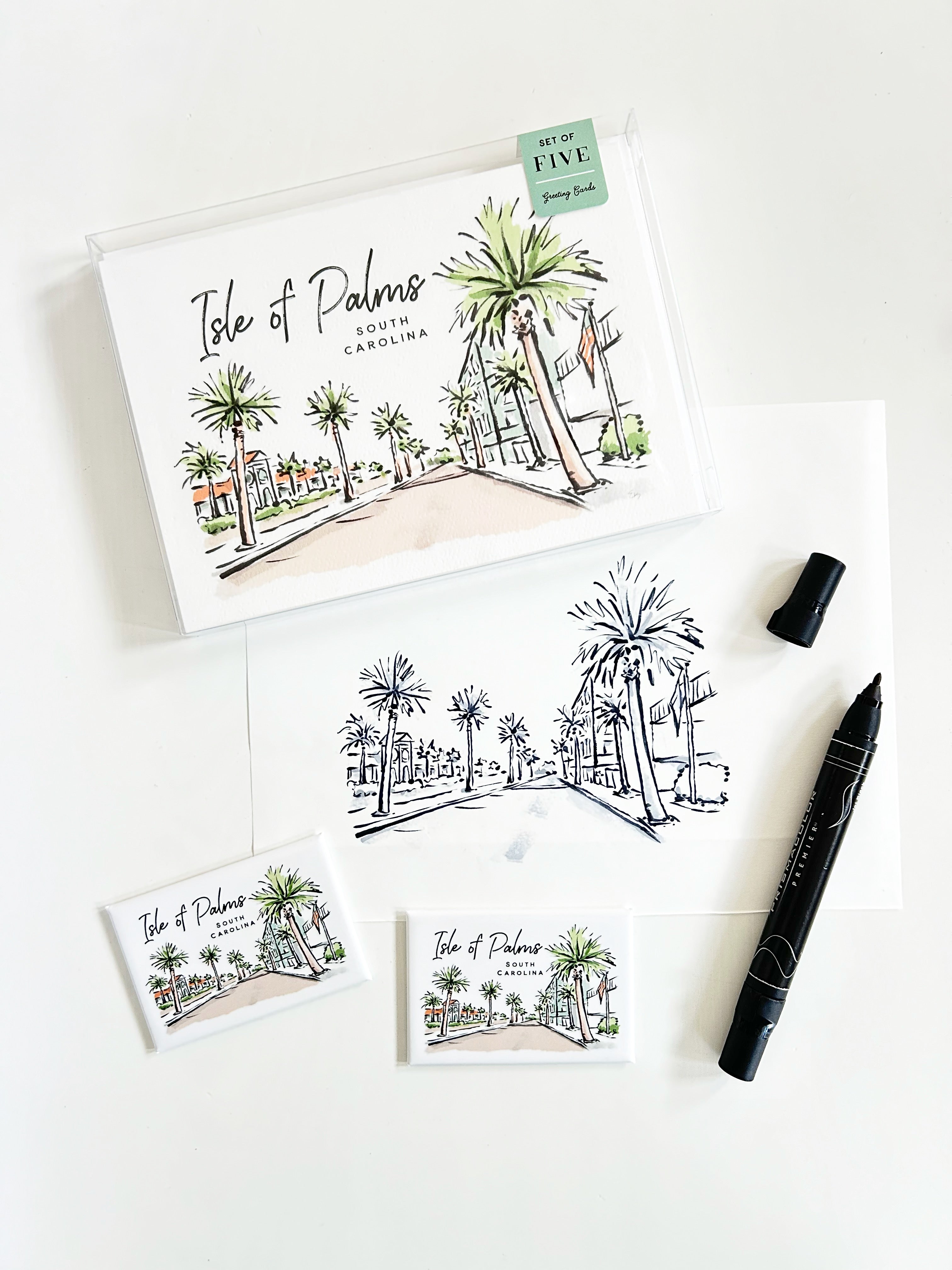 The Isle of Palms Greeting Card will inspire you to send all of your people a handwritten note! The felt texture of the paper mixed with the lovely architectural illustration make this folded card POP! The 5x7 size is ideal for framing.