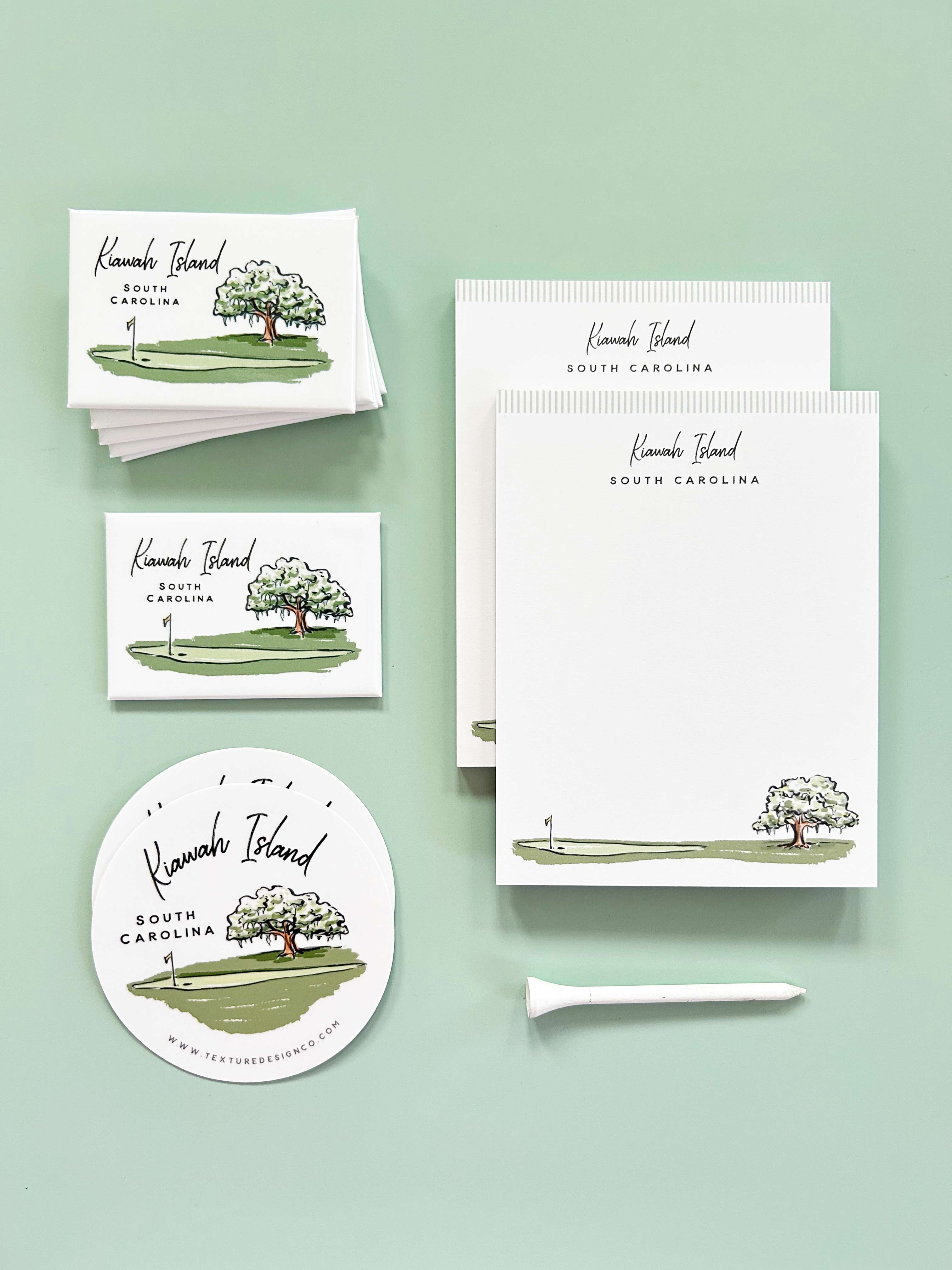 The Kiawah magnet features a vibrant depiction of the golf course, highlighted by an oak tree draped in Spanish moss. Cheerful and charming, use this magnet to commemorate a trip or gift to a friend.