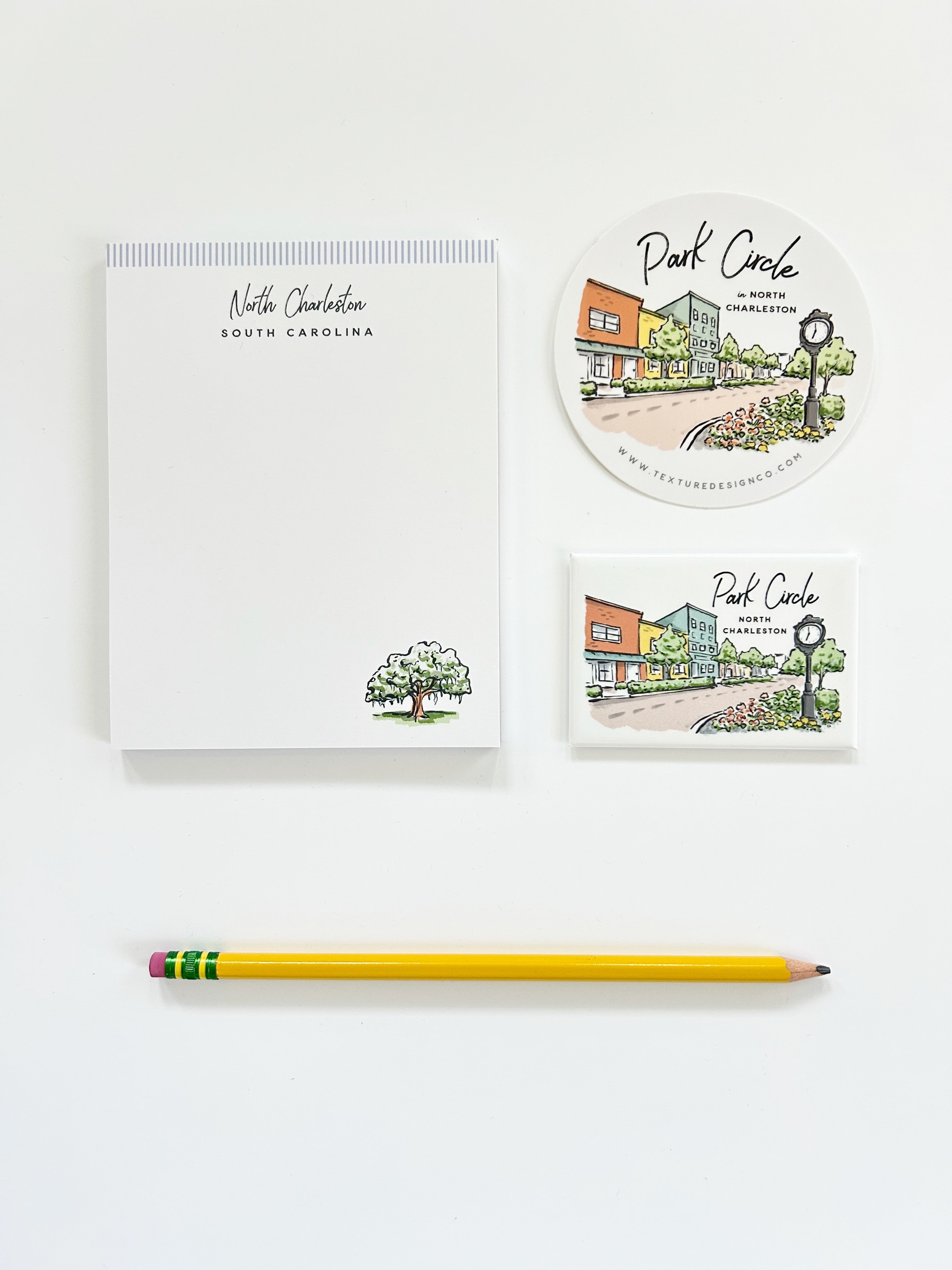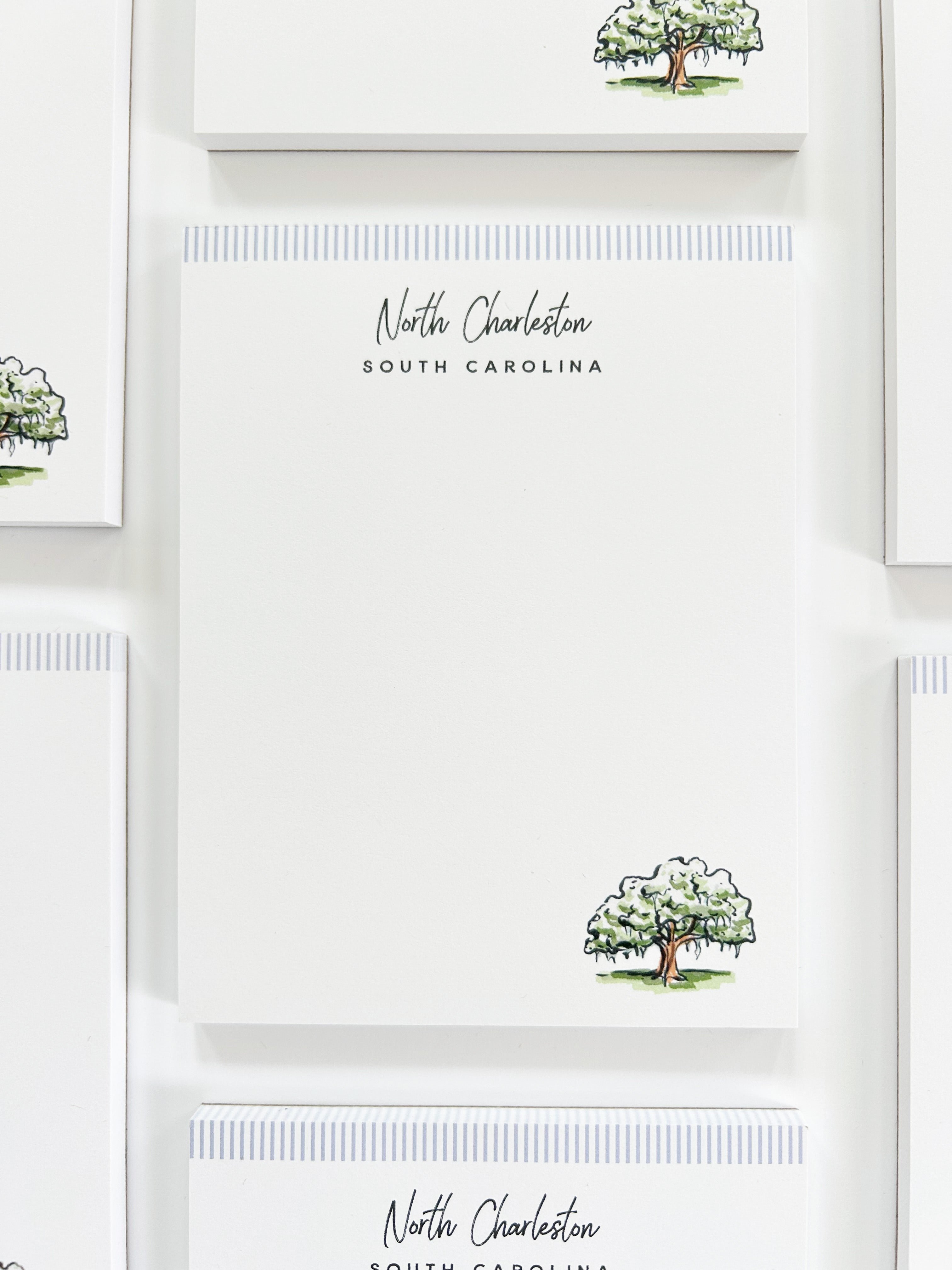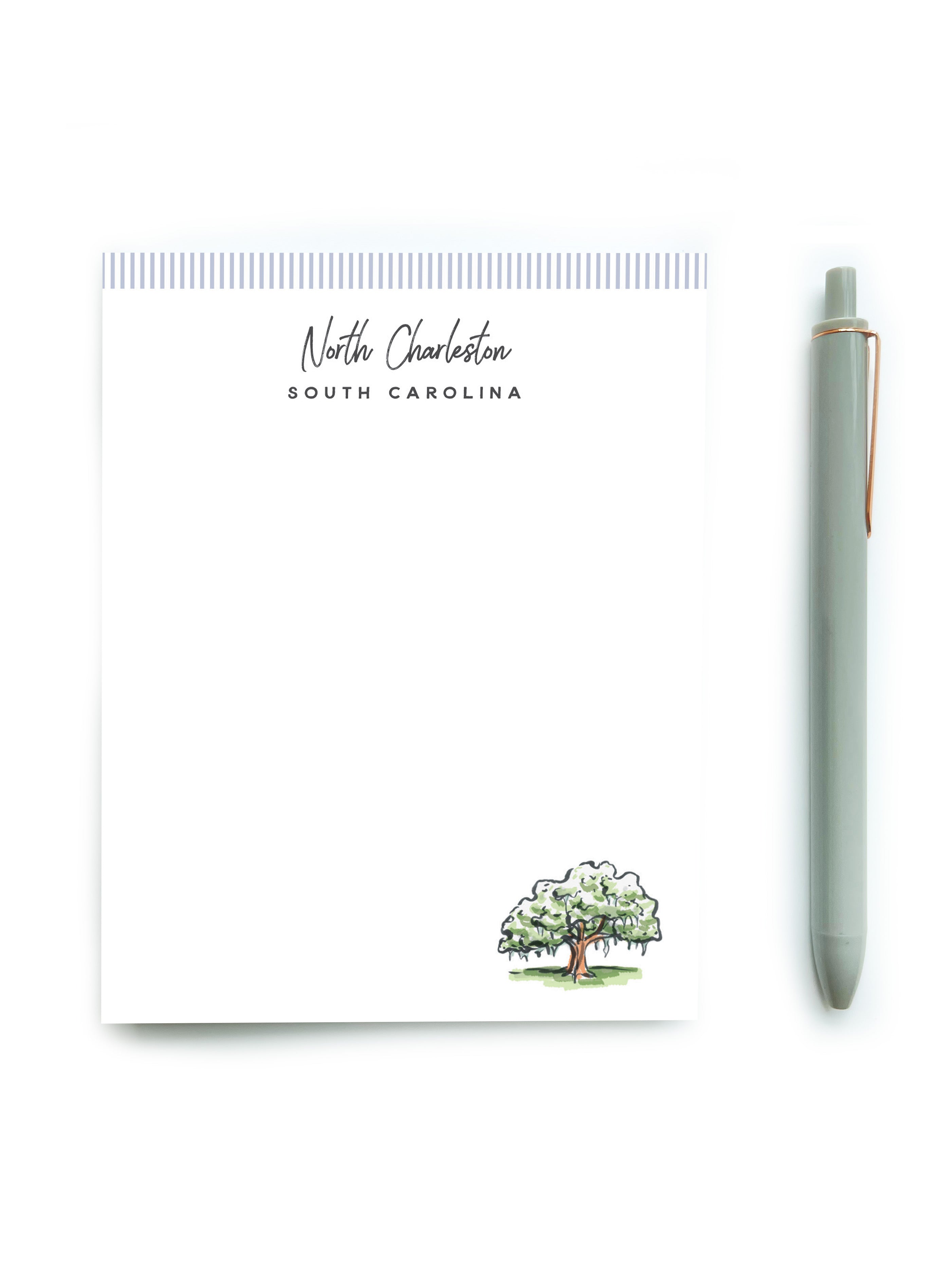 The North Charleston notepad features an illustration of a live oak covered in Spanish moss—classic Lowcountry vibes. Pretty and practical, use this notepad to make to-do lists more fun, commemorate a vacation, or gift to a friend.