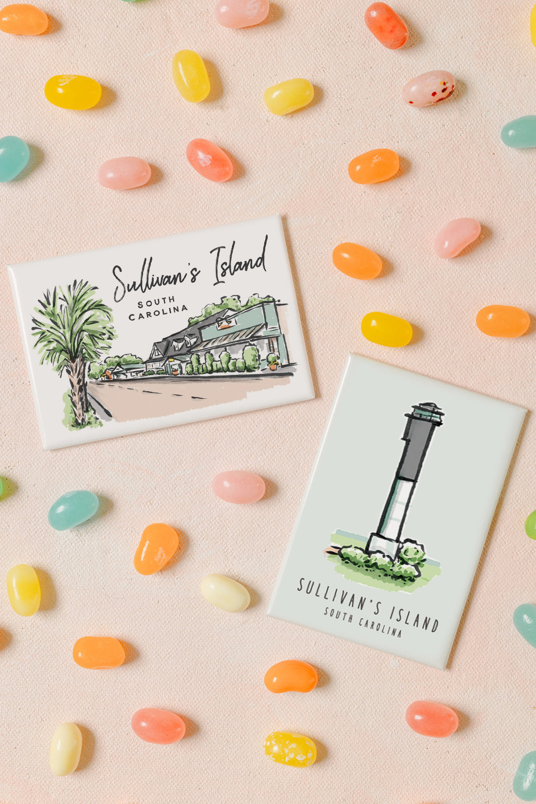 The Sullivan's Island magnet includes a colorful scene of Central Ave. Cheerful and charming, use this magnet to commemorate a Sullivan's Island trip or gift to a friend.