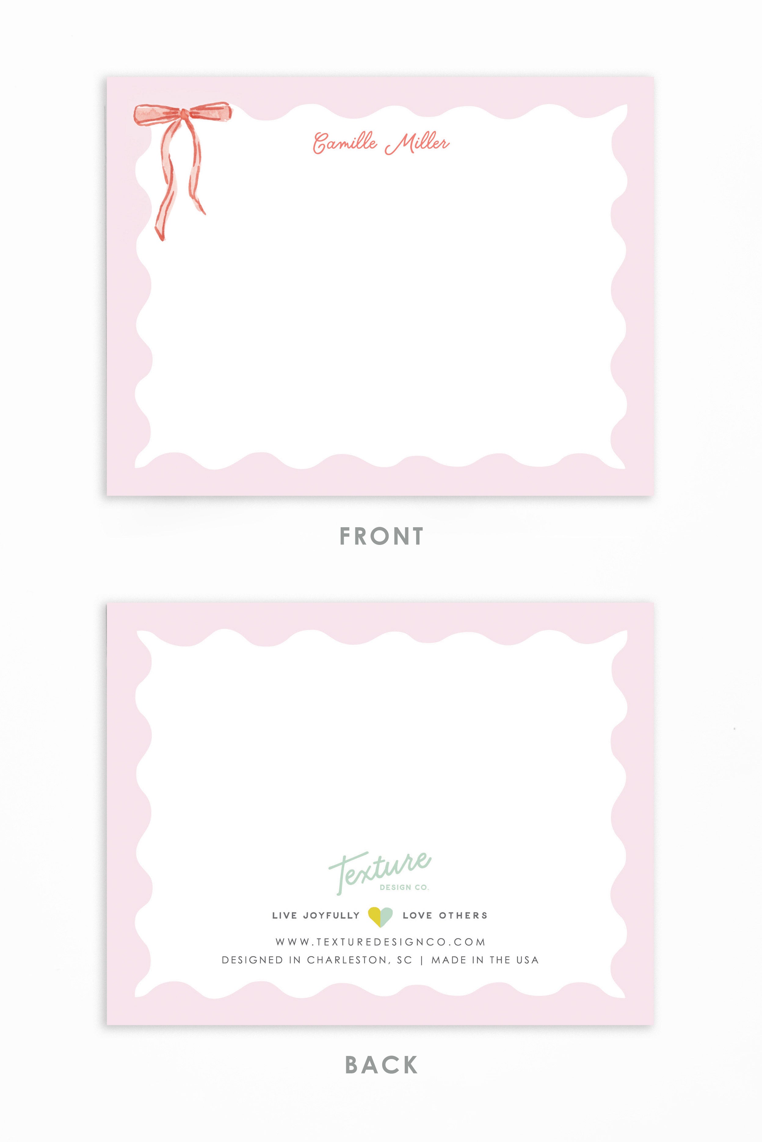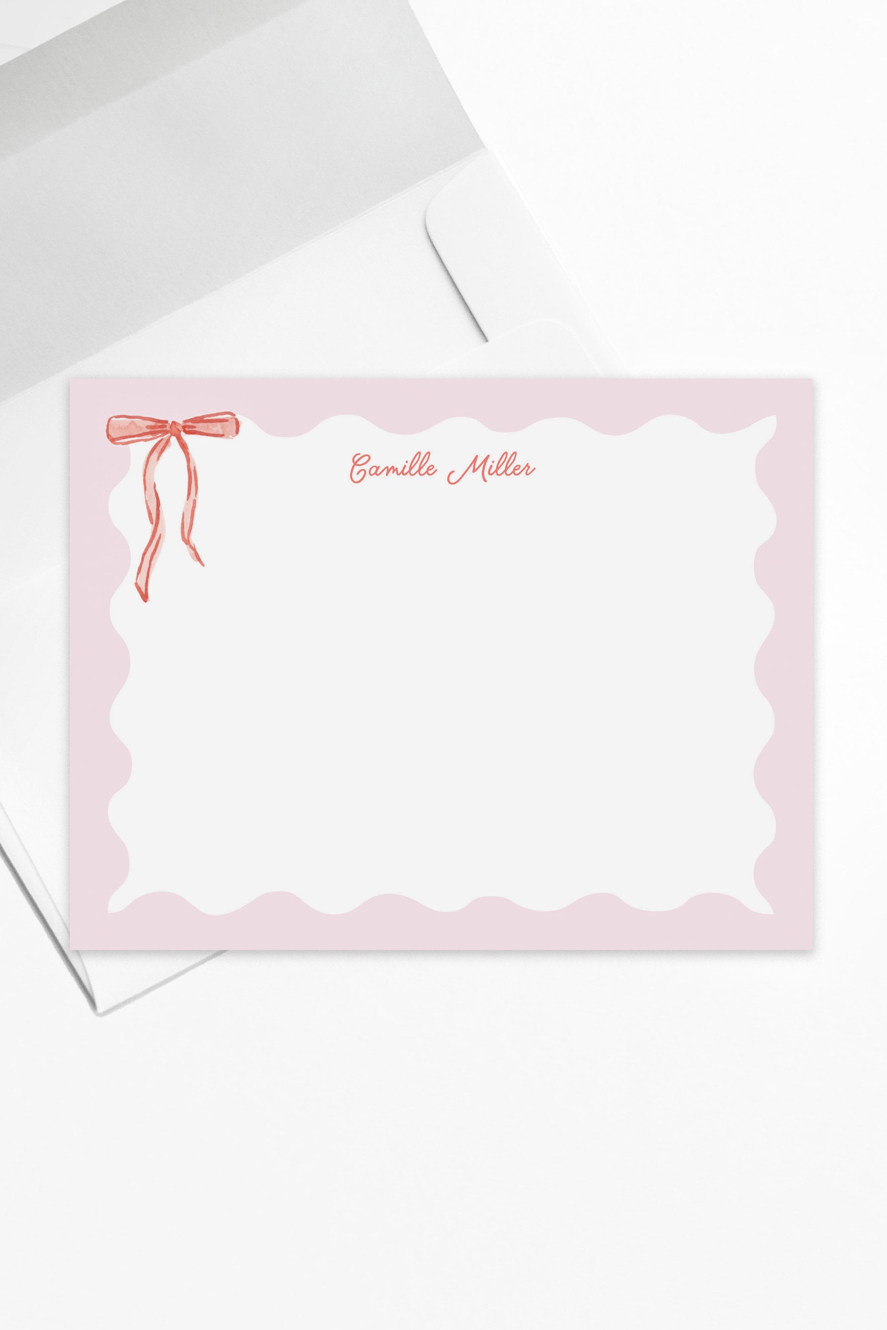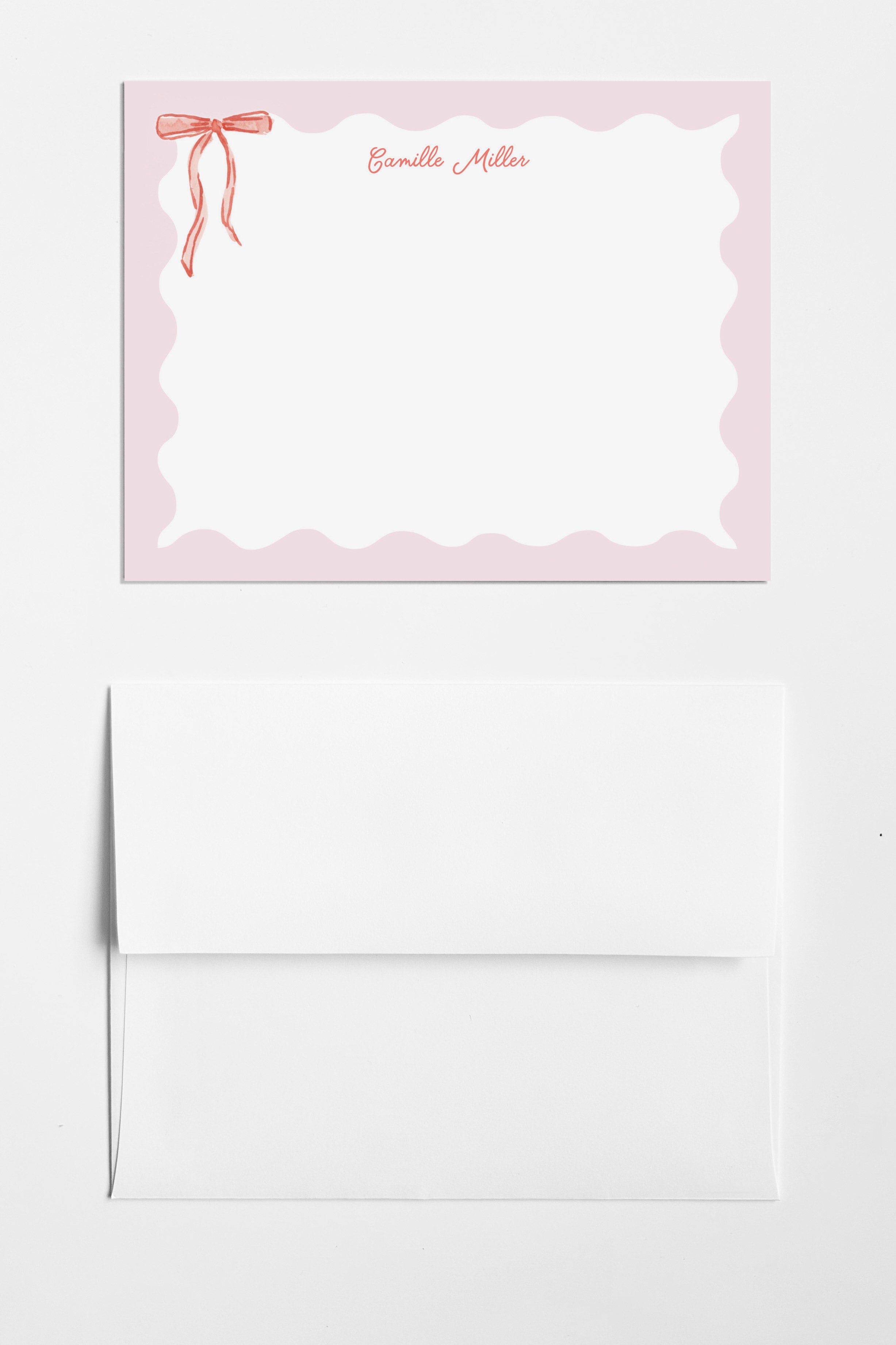 The Camille is a sweet and delicate stationery set, featuring soft pink and red hues with a watercolor satin ribbon detail. Use this stationery set to add a touch of sweetness to notes and thank you's.
