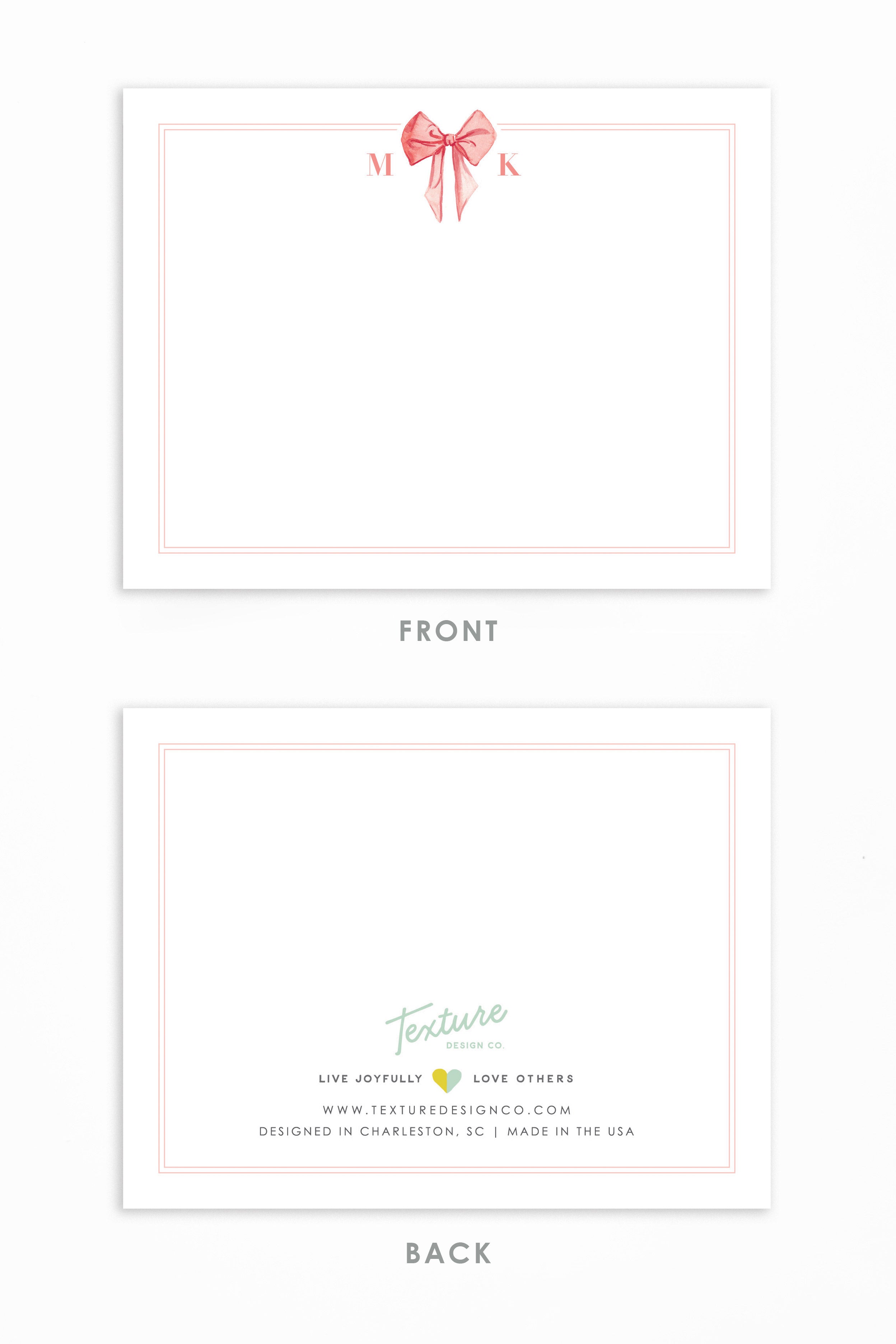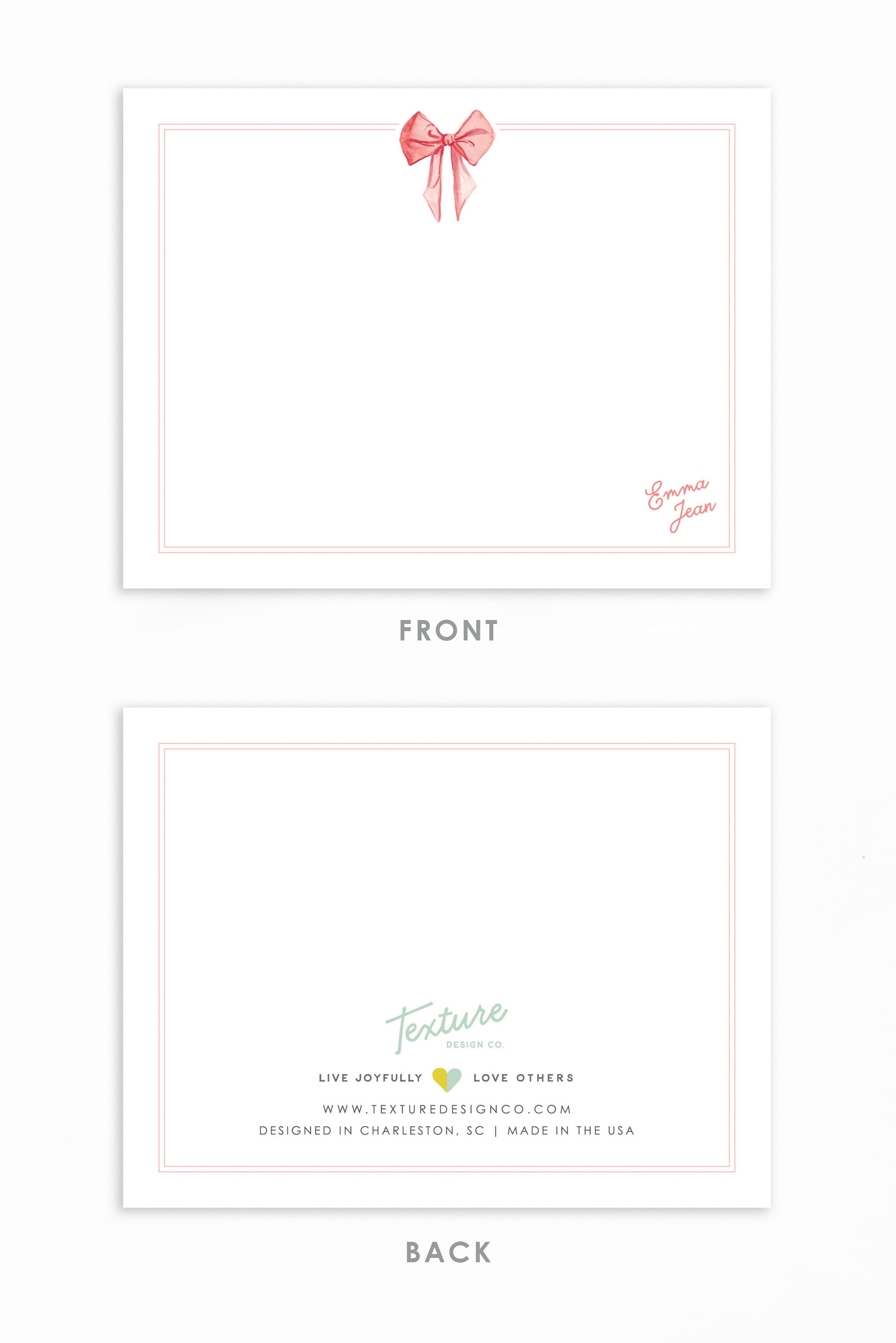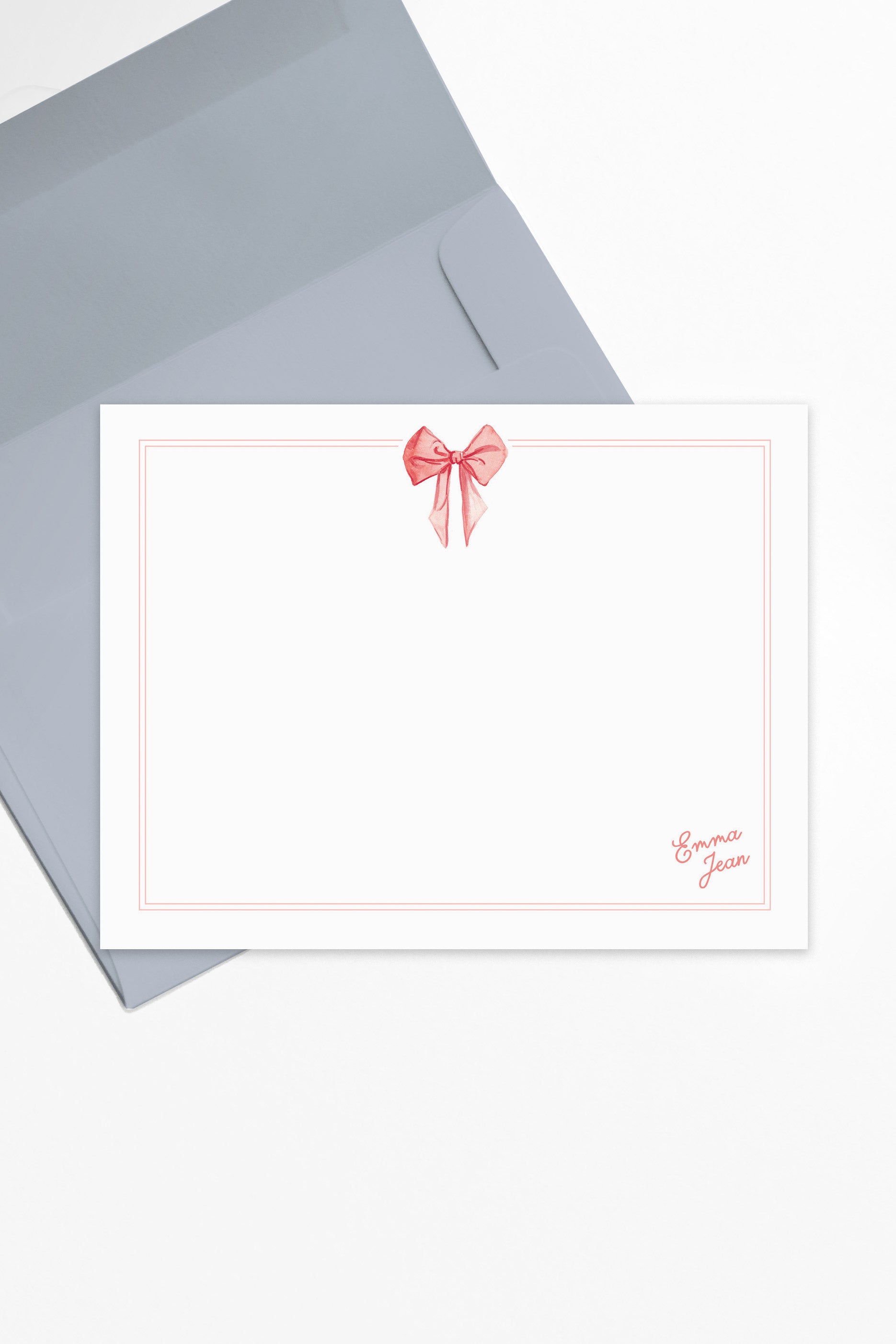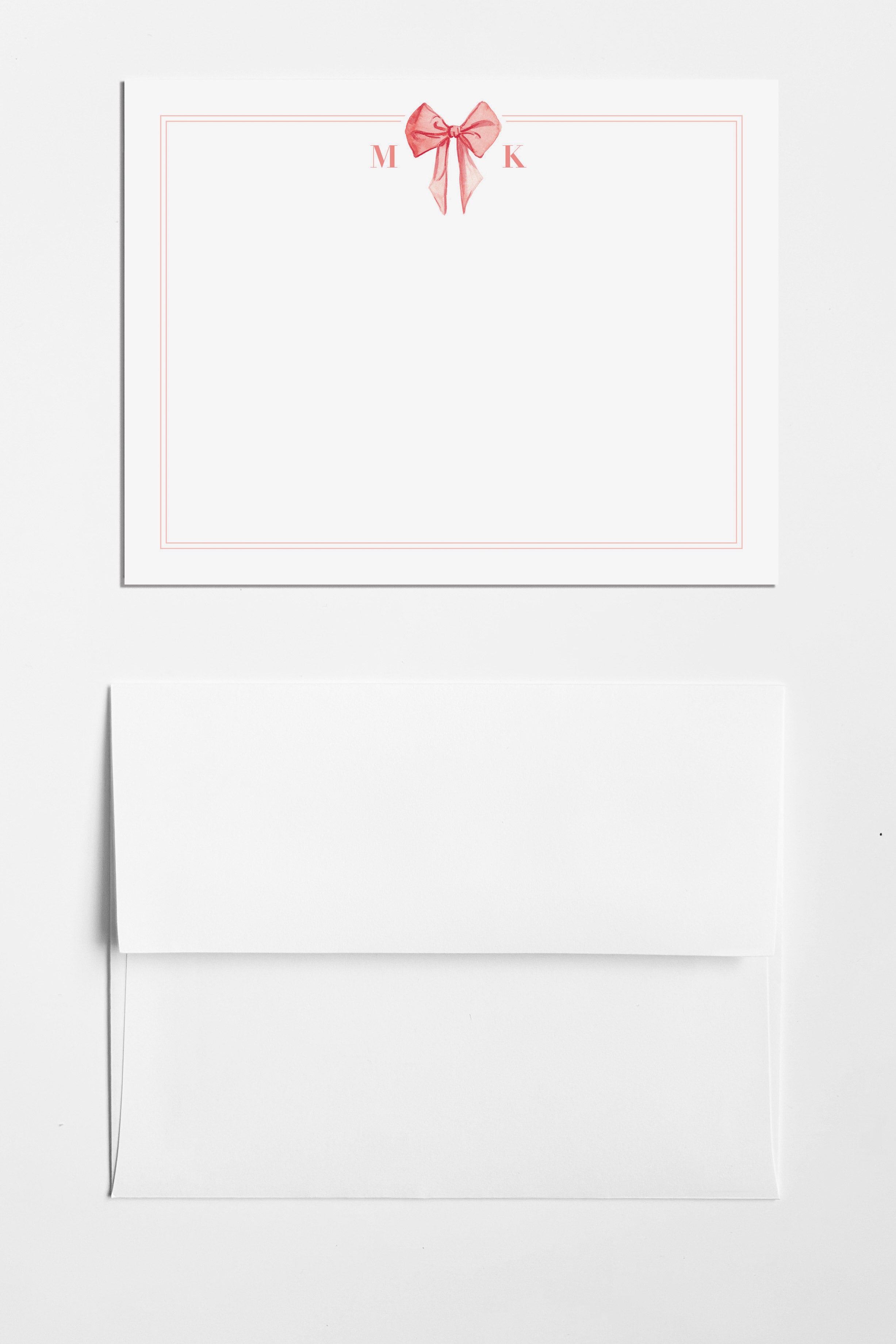 The Kathleen stationery showcases a painting of a soft pink bow, exuding a sweet and feminine touch. The Kathleen is perfect for adding some girly flair to your notes and letters.