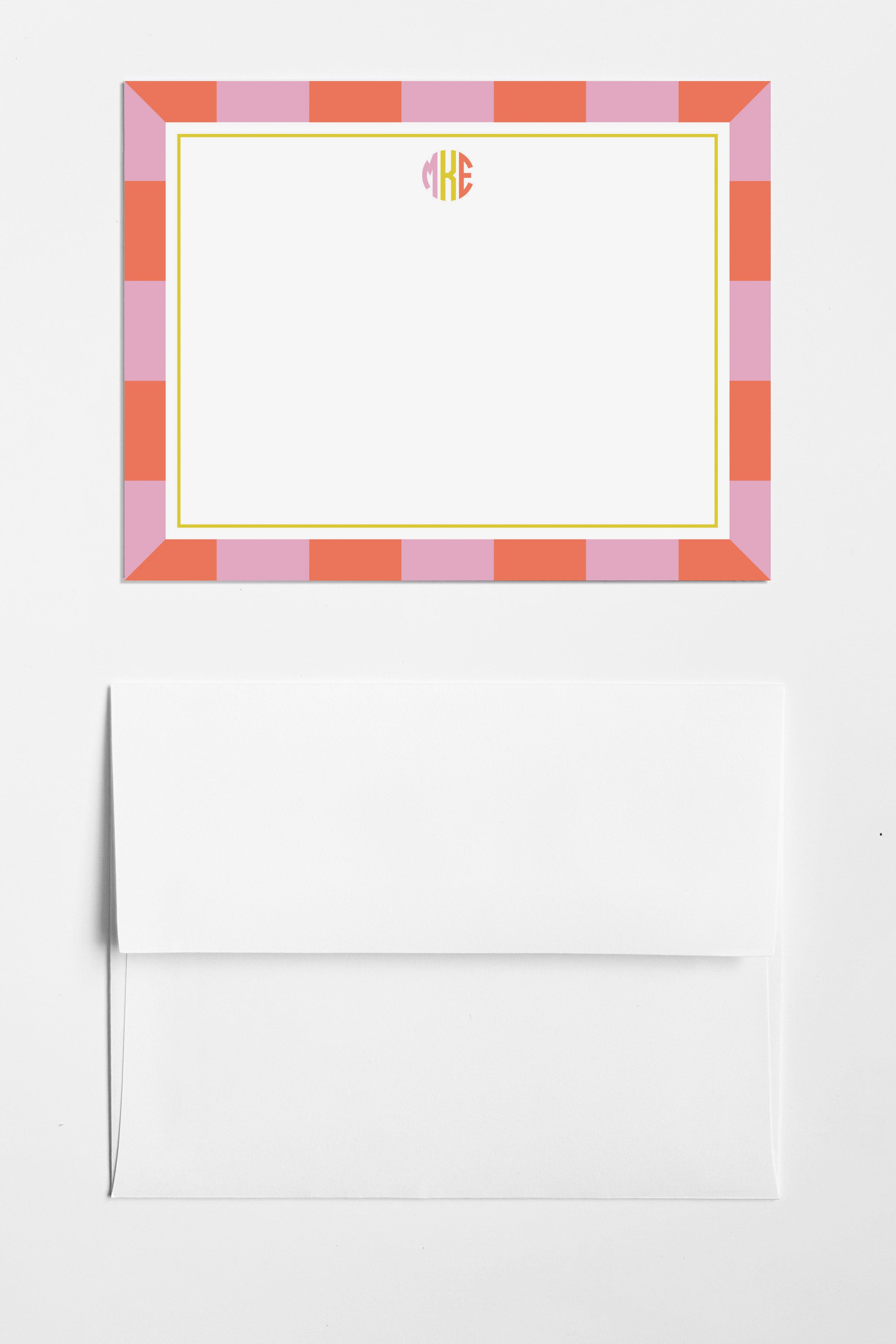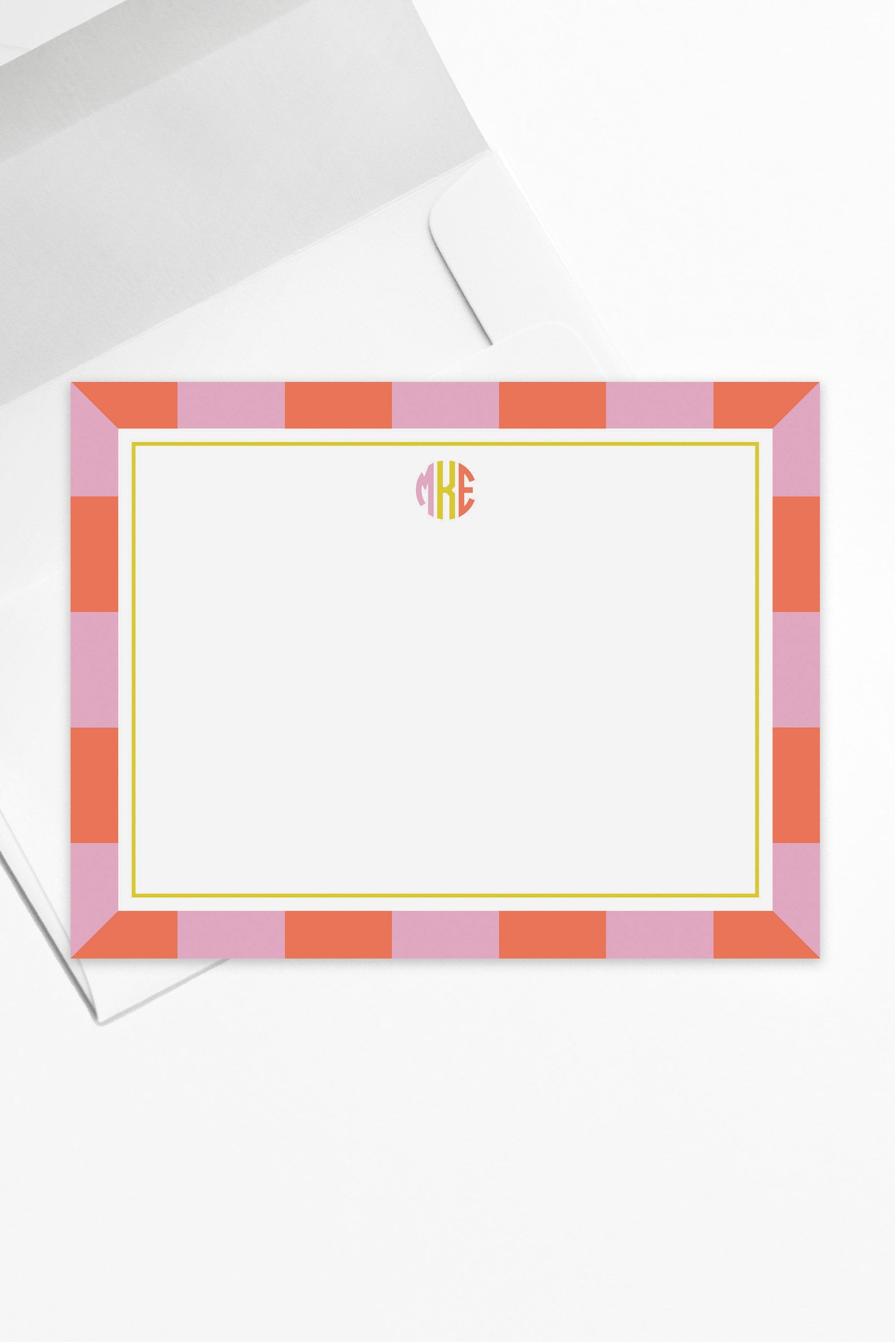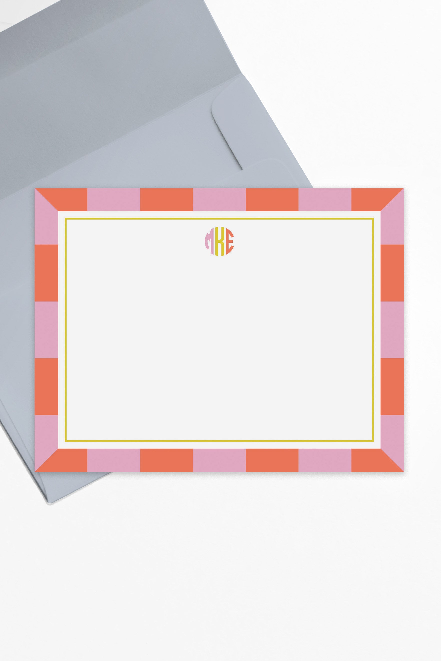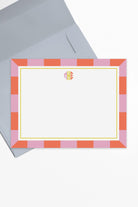 The Margot is a chic personalized stationery set, featuring a funky blend of lilac, coral, and gold hues. Geometric and whimsical, it is the perfect stationery for adding a touch of sophistication and charm to any correspondence.