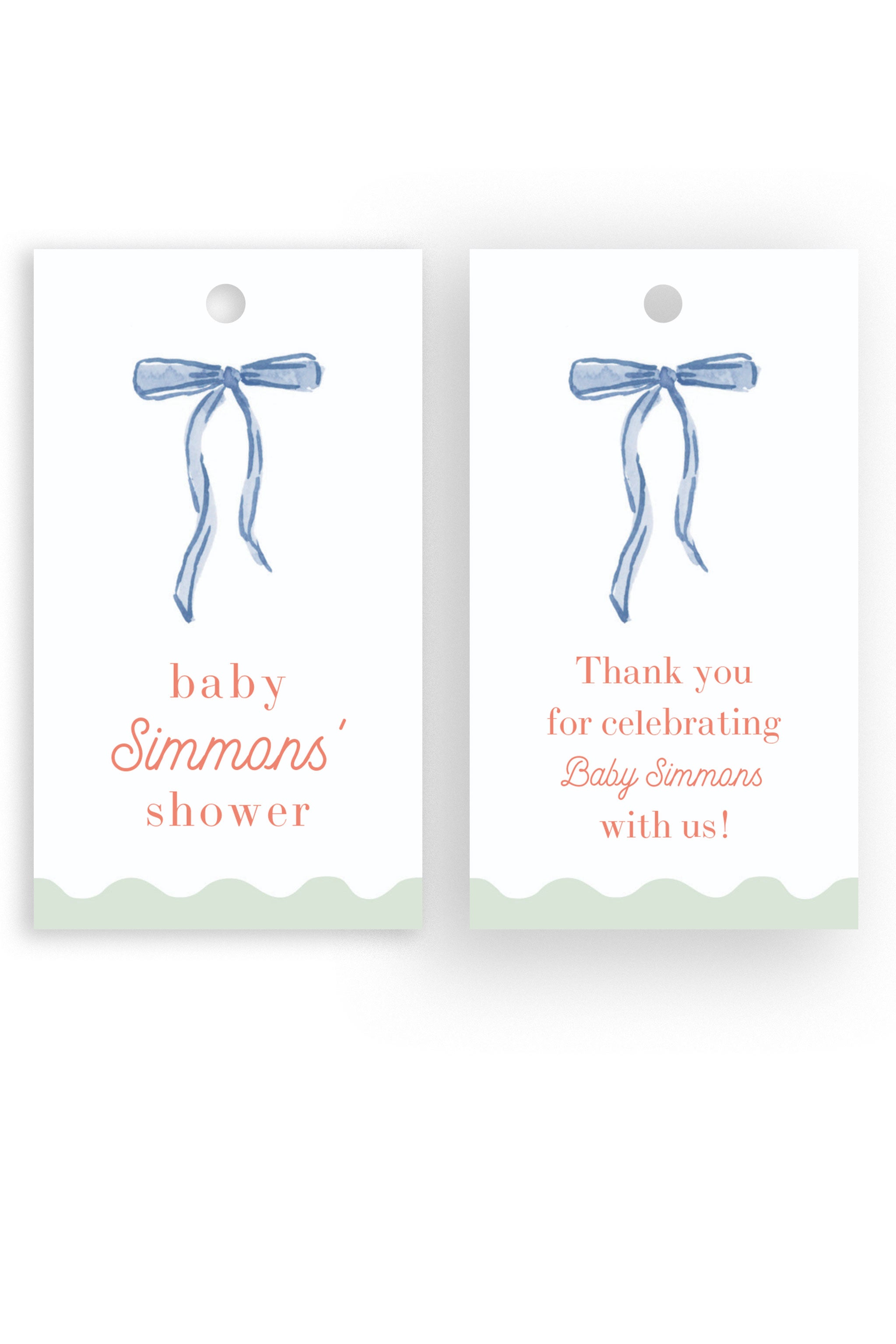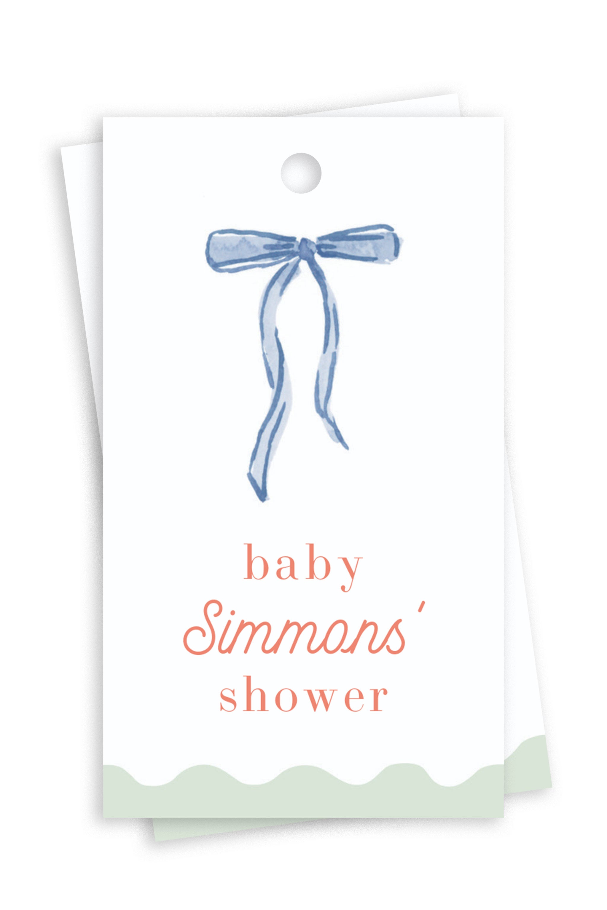 Celebrate the mom-to-be with this charming watercolor gift tag! Featuring a delicate, hand-painted satin bow and an elegant scalloped border, this tag adds a timeless and heartfelt touch to your celebration. Personalize it with your details and send guests home with a sweet keepsake they’ll cherish!