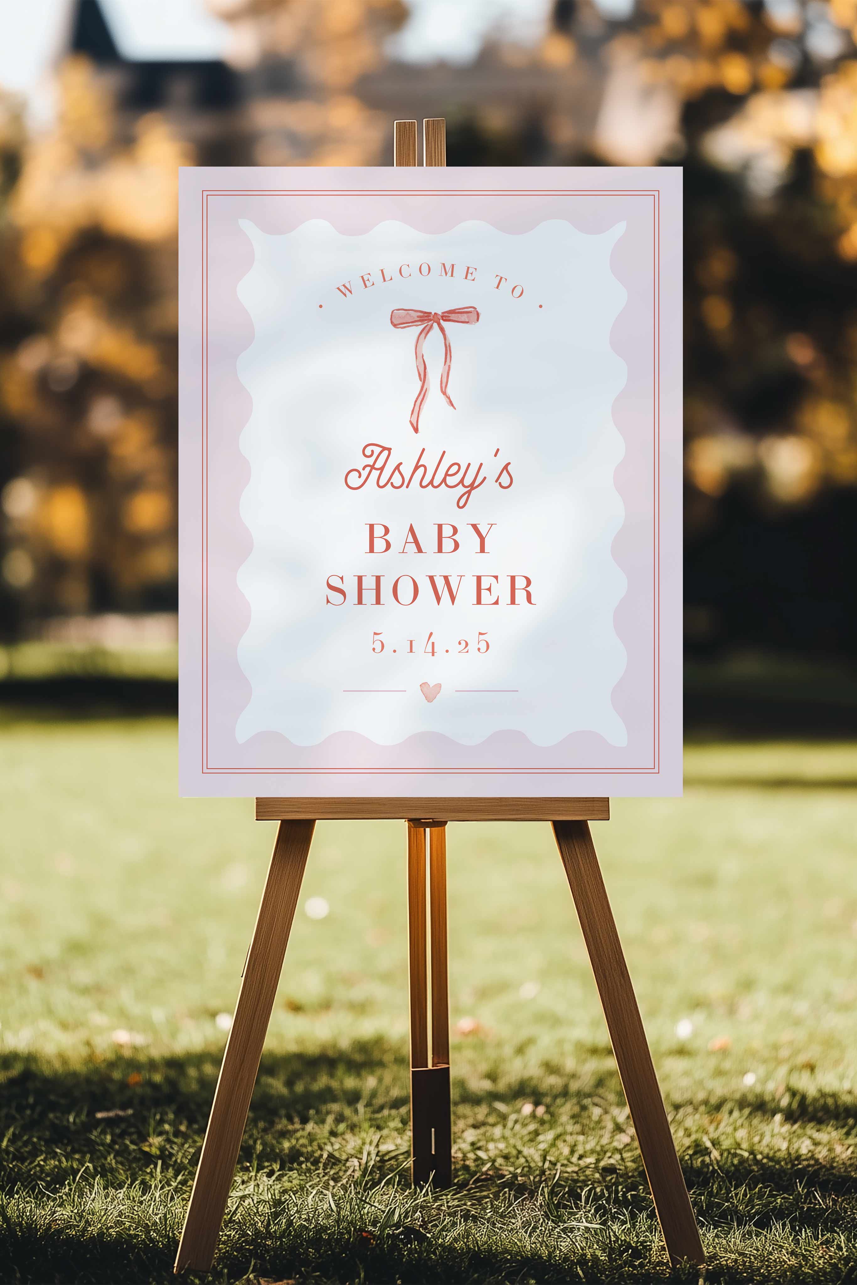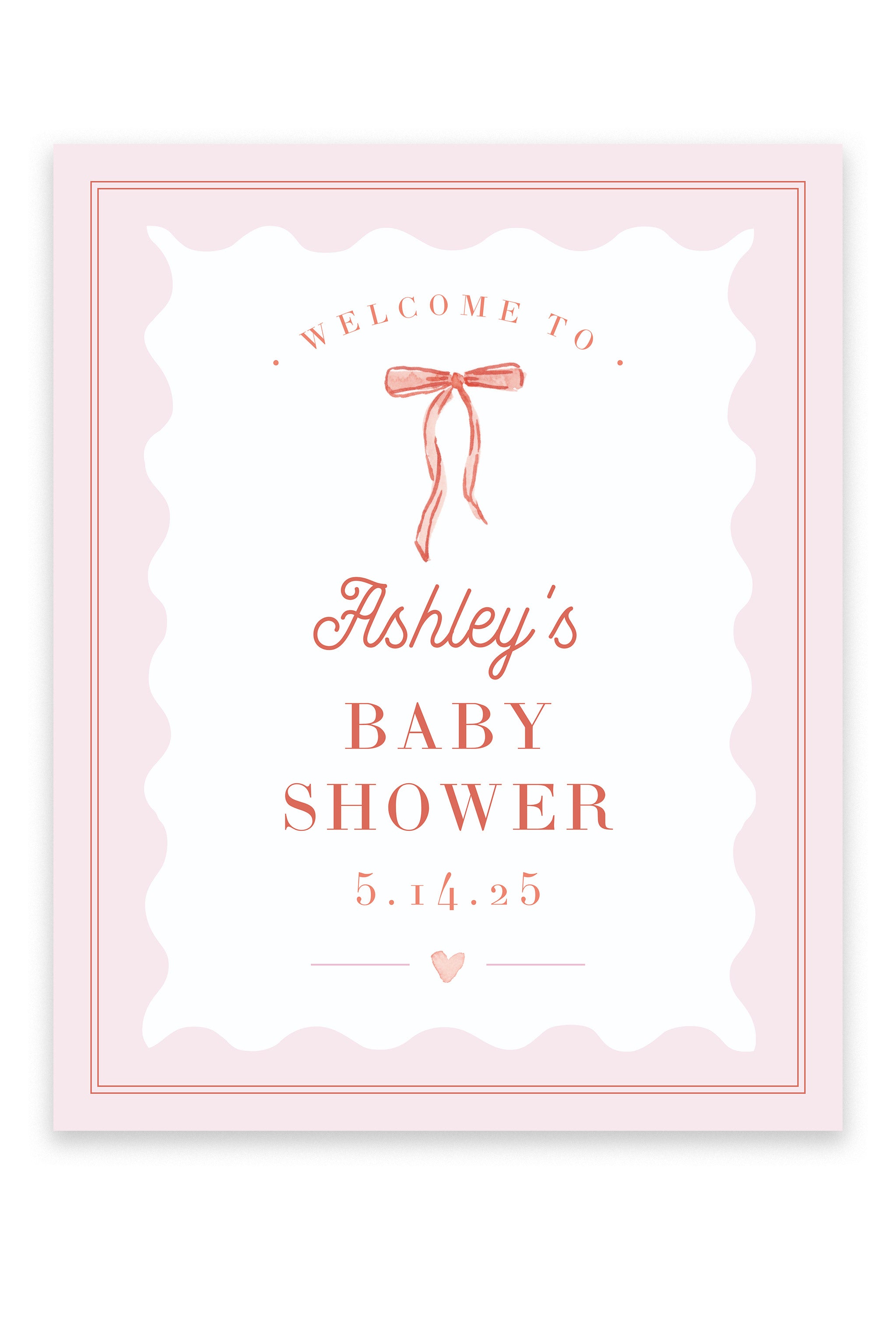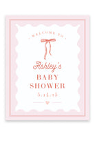 Celebrate mom-to-be with the charm of this adorable welcome sign! Featuring a soft, hand-painted satin bow illustration and a sweet scalloped border, this party poster captures a timeless and heartwarming aesthetic. Personalize it with your details and let the festivities begin!