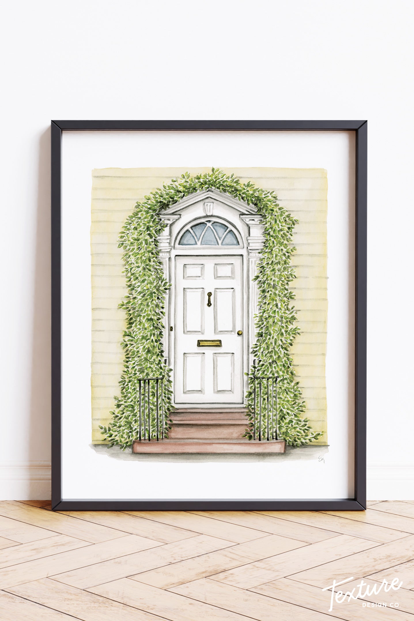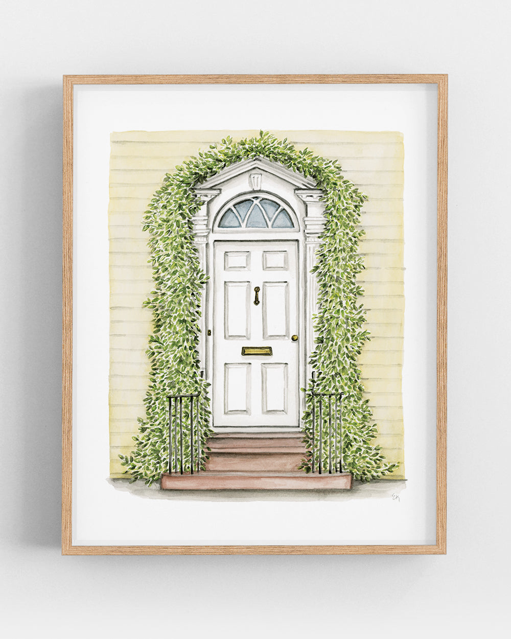 Inspired by the architectural design of the Lowcountry, the art print showcases an intricately detailed timeless front door from Charleston, SC. The cascading jasmine envelopes the door creating a union of natural and architectural design.