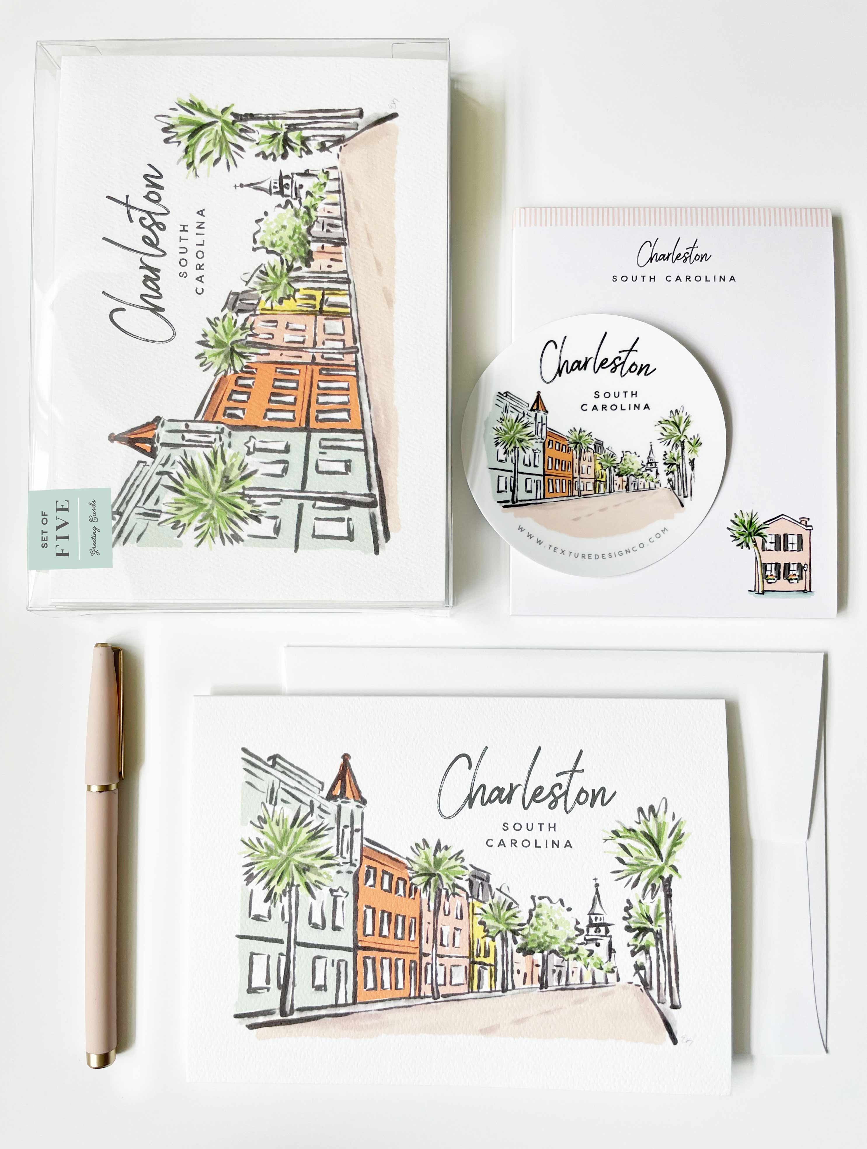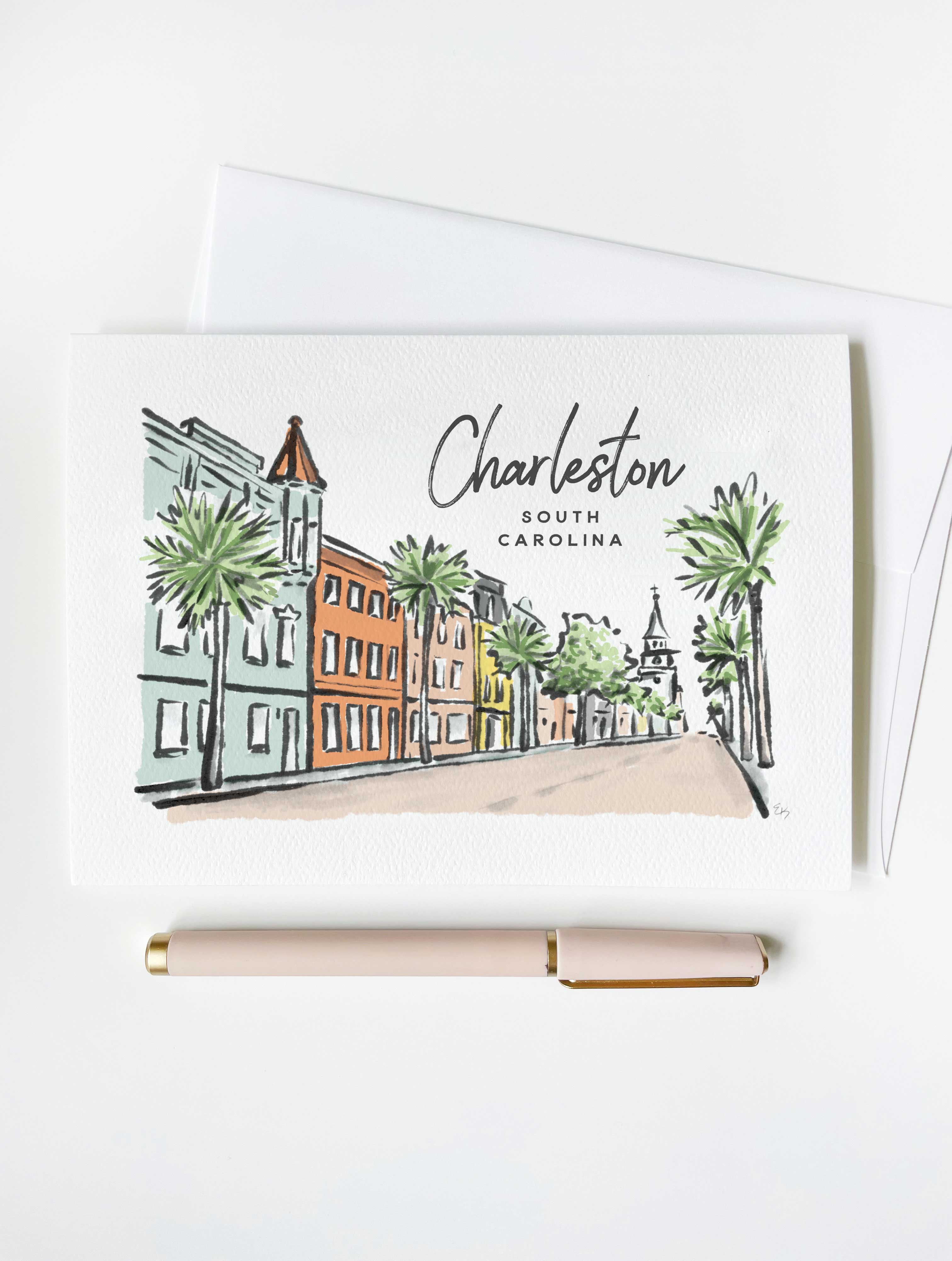 The Charleston Greeting Card will inspire you to send all of your people a handwritten note! The felt texture of the paper mixed with the lovely architectural illustration make this folded card POP! The 5x7 size is ideal for framing.