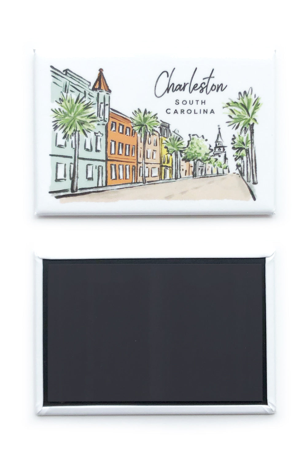 The Charleston magnet includes a colorful scene of downtown's Broad Street. Cheerful and charming, use this magnet to commemorate a CHS trip or gift to a friend.