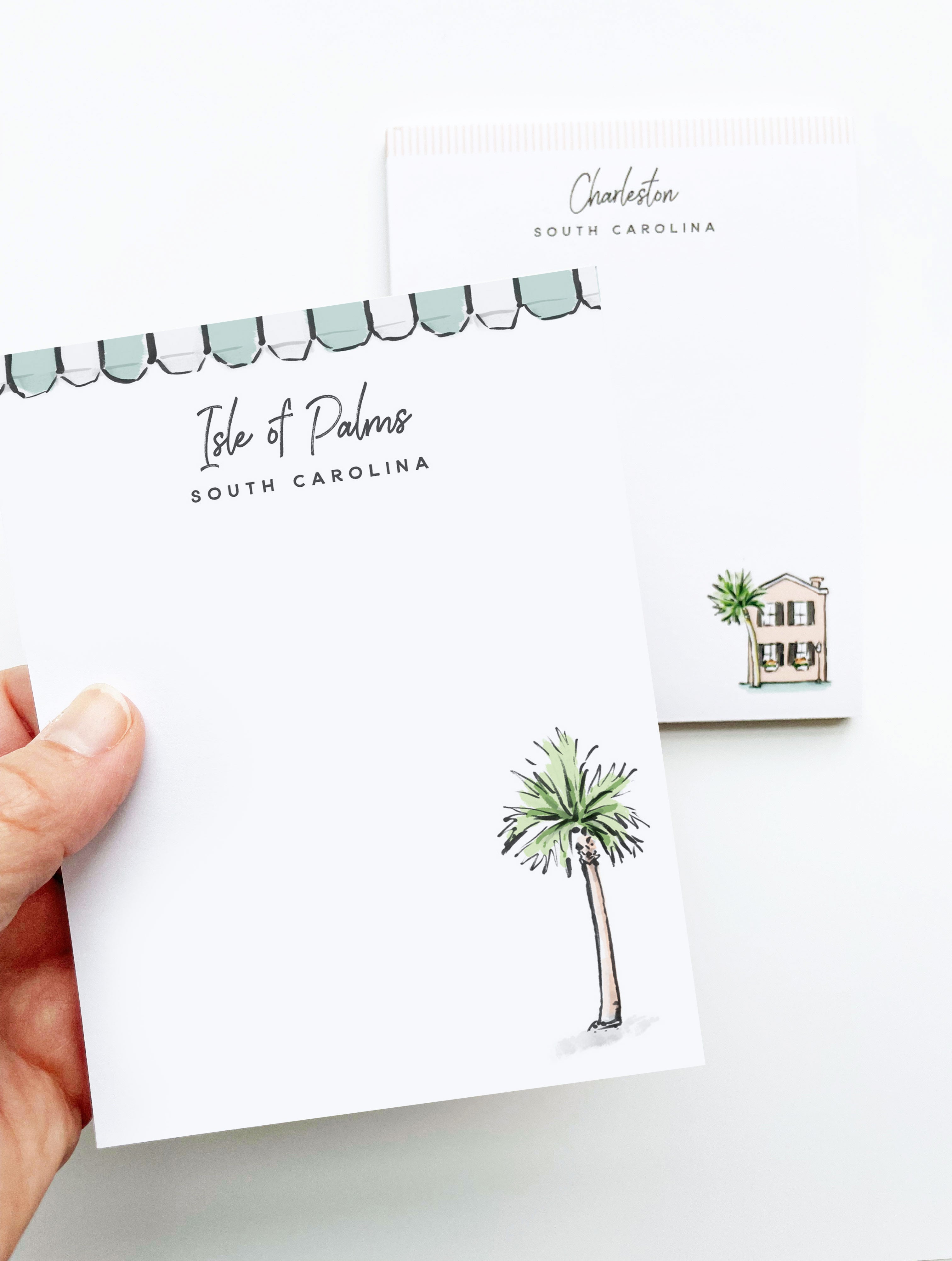The beach-inspired Isle of Palms notepad includes an illustration of one of the island's notable palm trees. Pretty and practical, use this notepad to make to-do lists more fun, commemorate a beach trip, or gift to a friend.