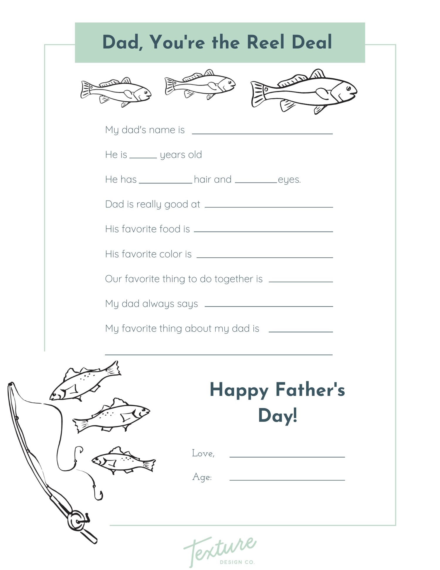 Enjoy having the kids write up their answers about who dad is and what he enjoys! Their responses will leave you smiling. The questionnaire is ideal for dads and grandads on Father's Day. Available for download after checkout. Formatted for 8.5" x 11" paper.