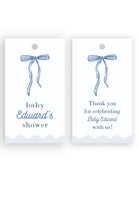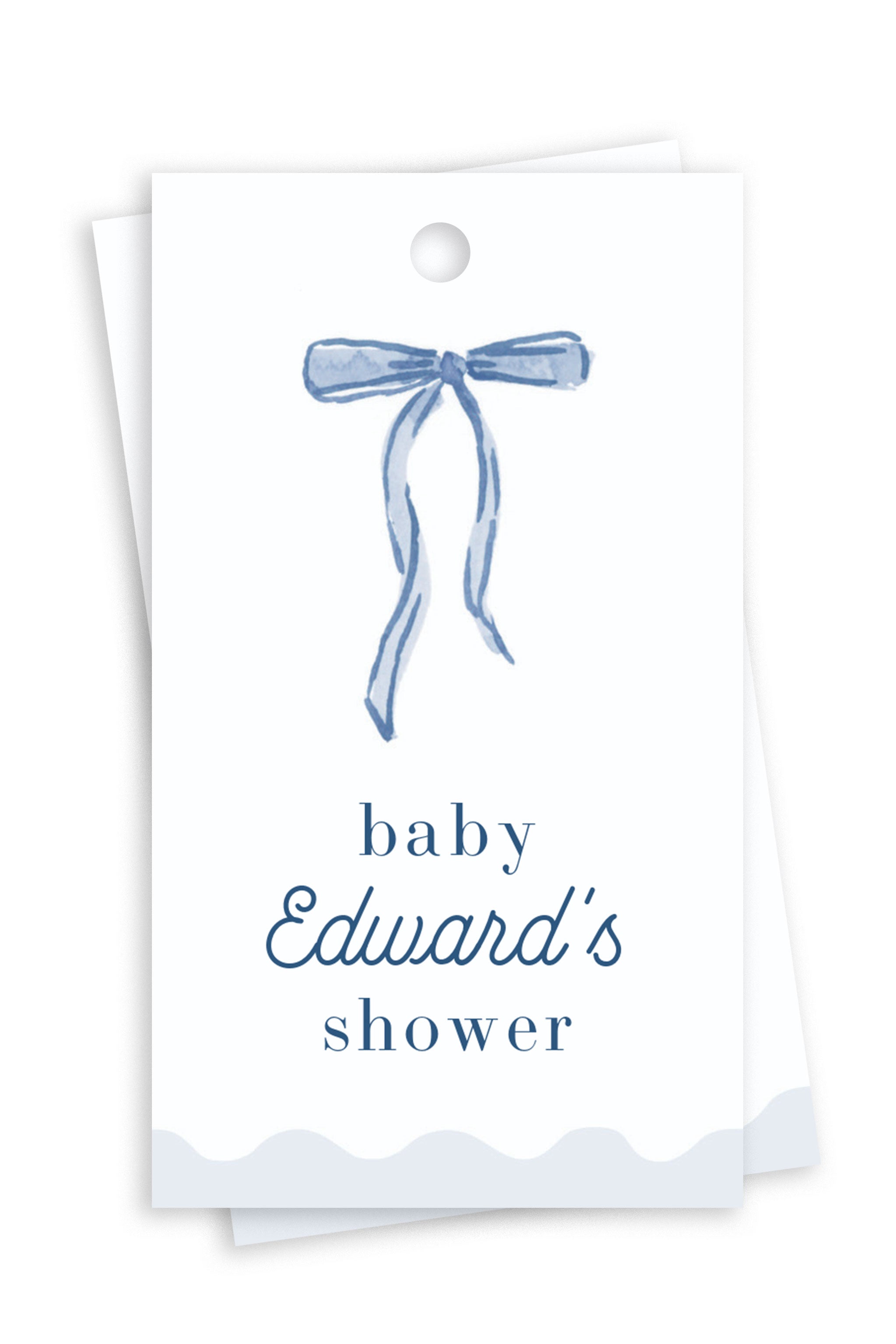 Celebrate the mom-to-be with this charming watercolor gift tag! Featuring a delicate, hand-painted satin bow and an elegant scalloped border, this tag adds a timeless and heartfelt touch to your celebration. Personalize it with your details and send guests home with a sweet keepsake they’ll cherish!