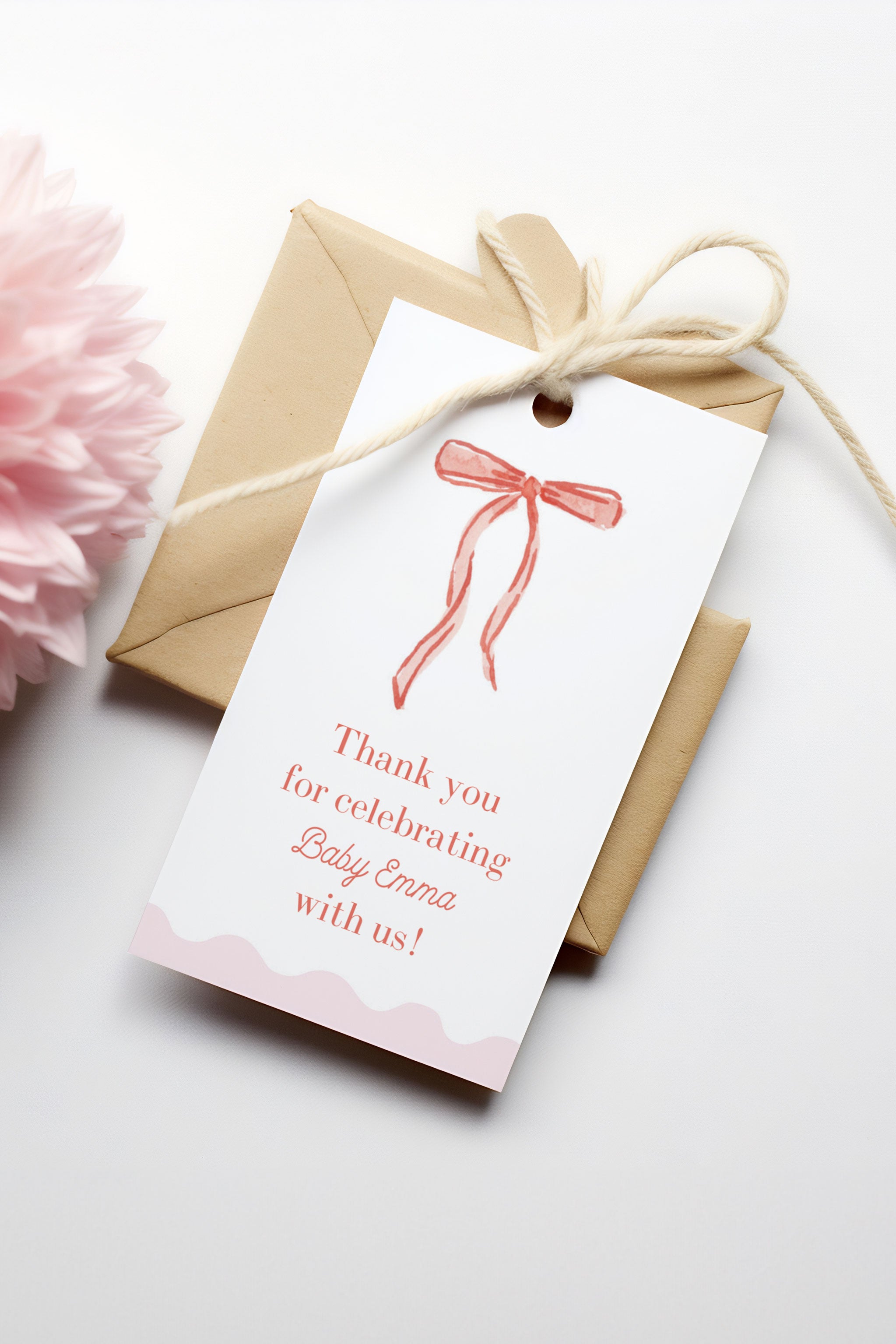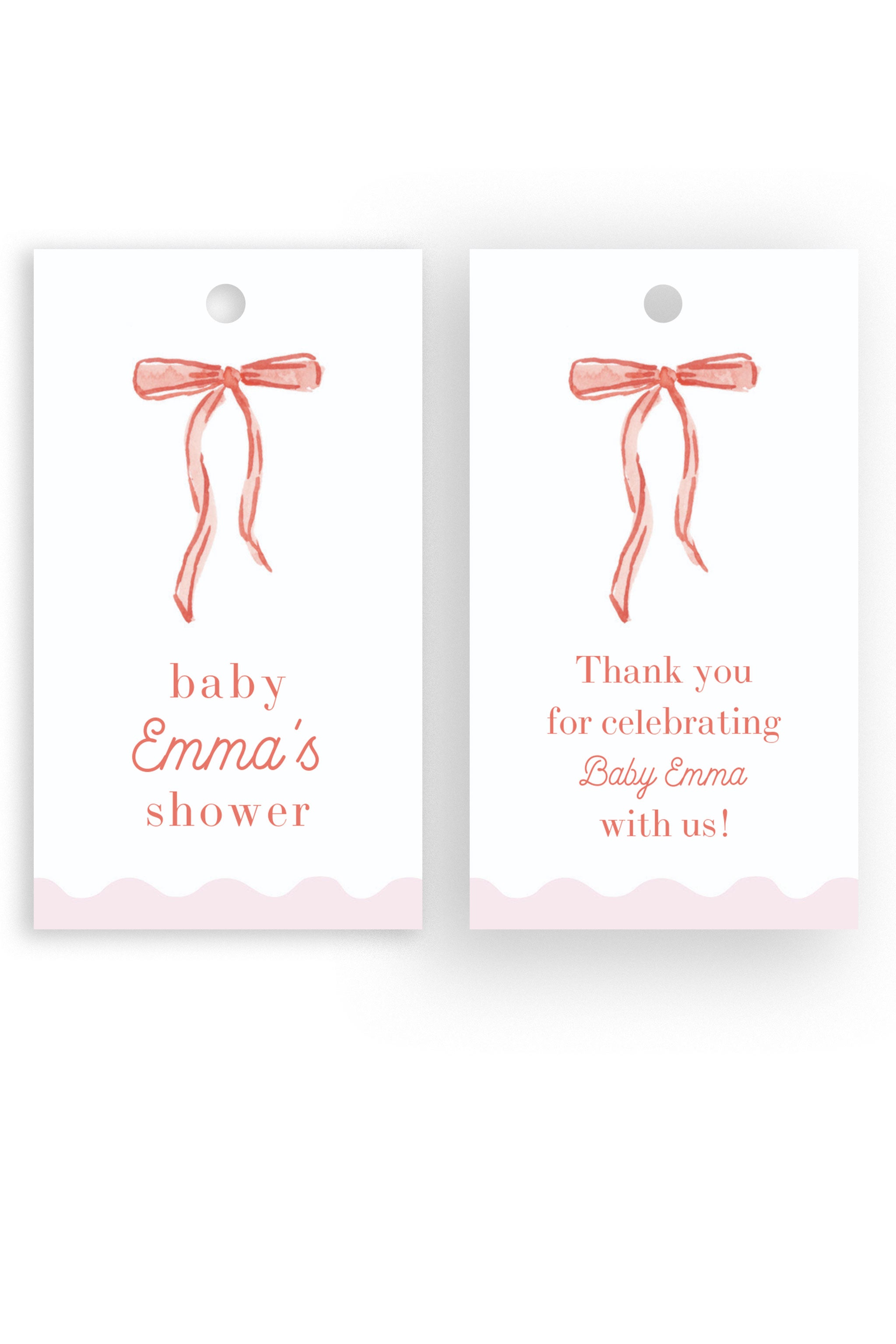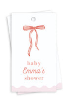 Celebrate the mom-to-be with this charming watercolor gift tag! Featuring a delicate, hand-painted satin bow and an elegant scalloped border, this tag adds a timeless and heartfelt touch to your celebration. Personalize it with your details and send guests home with a sweet keepsake they’ll cherish!