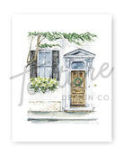 Art print features a watercolor painting of a Charleston, SC flower box.