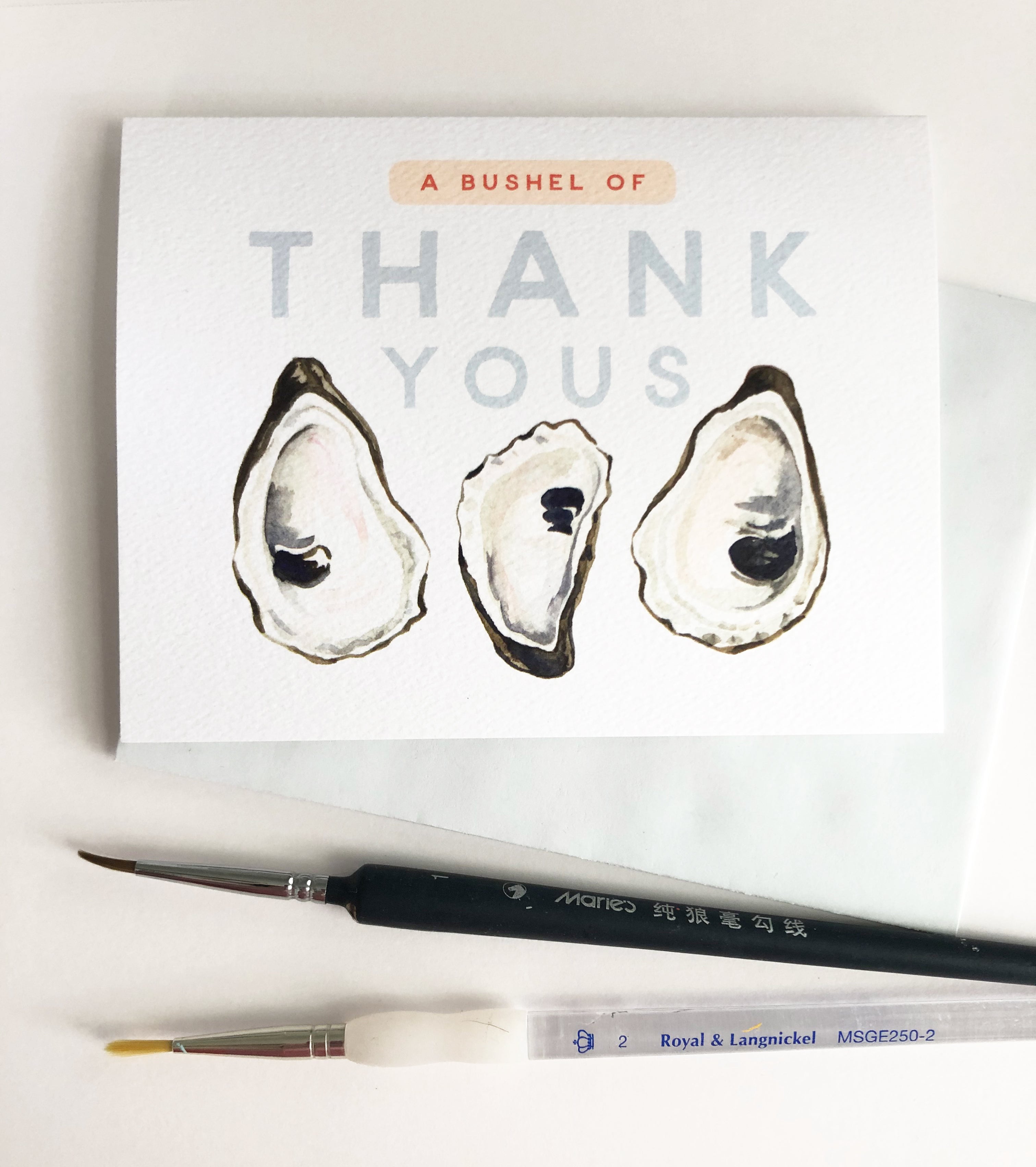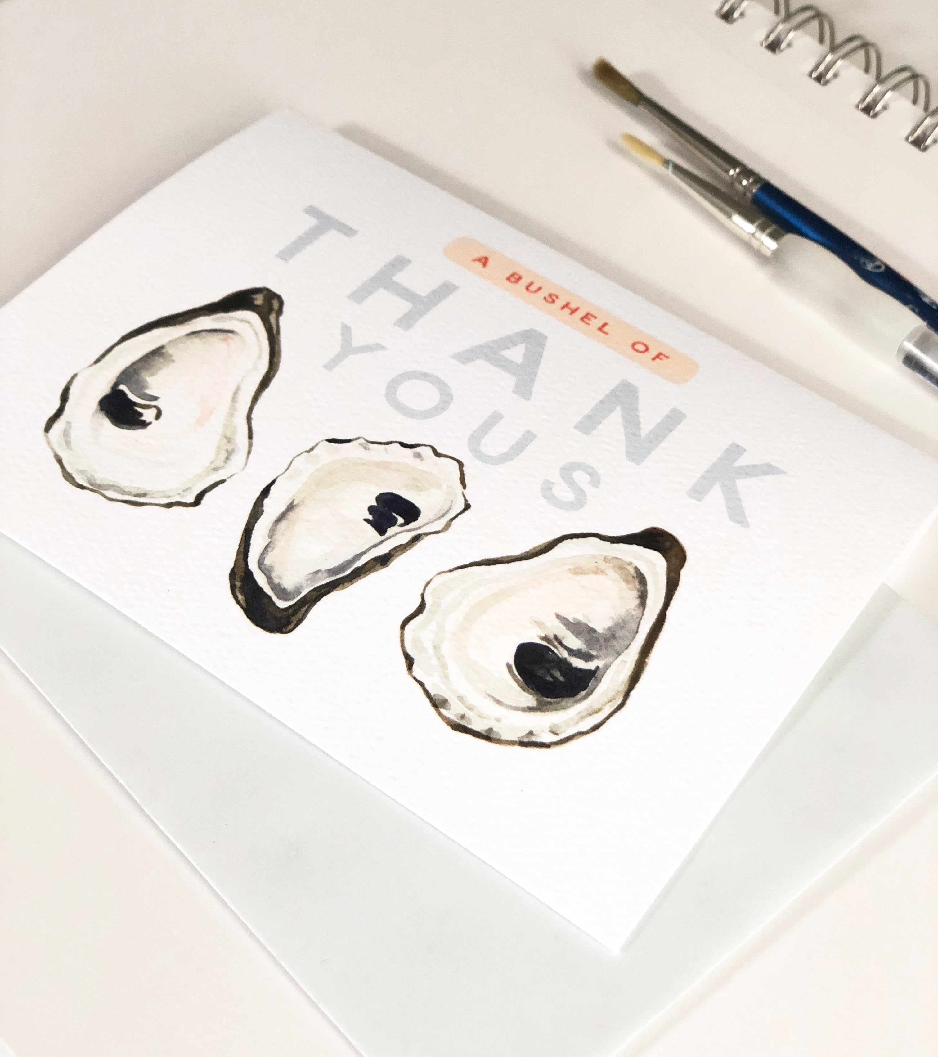 Perfect for a variety of occasions, the oyster shell thank you card is a favorite in the shop.