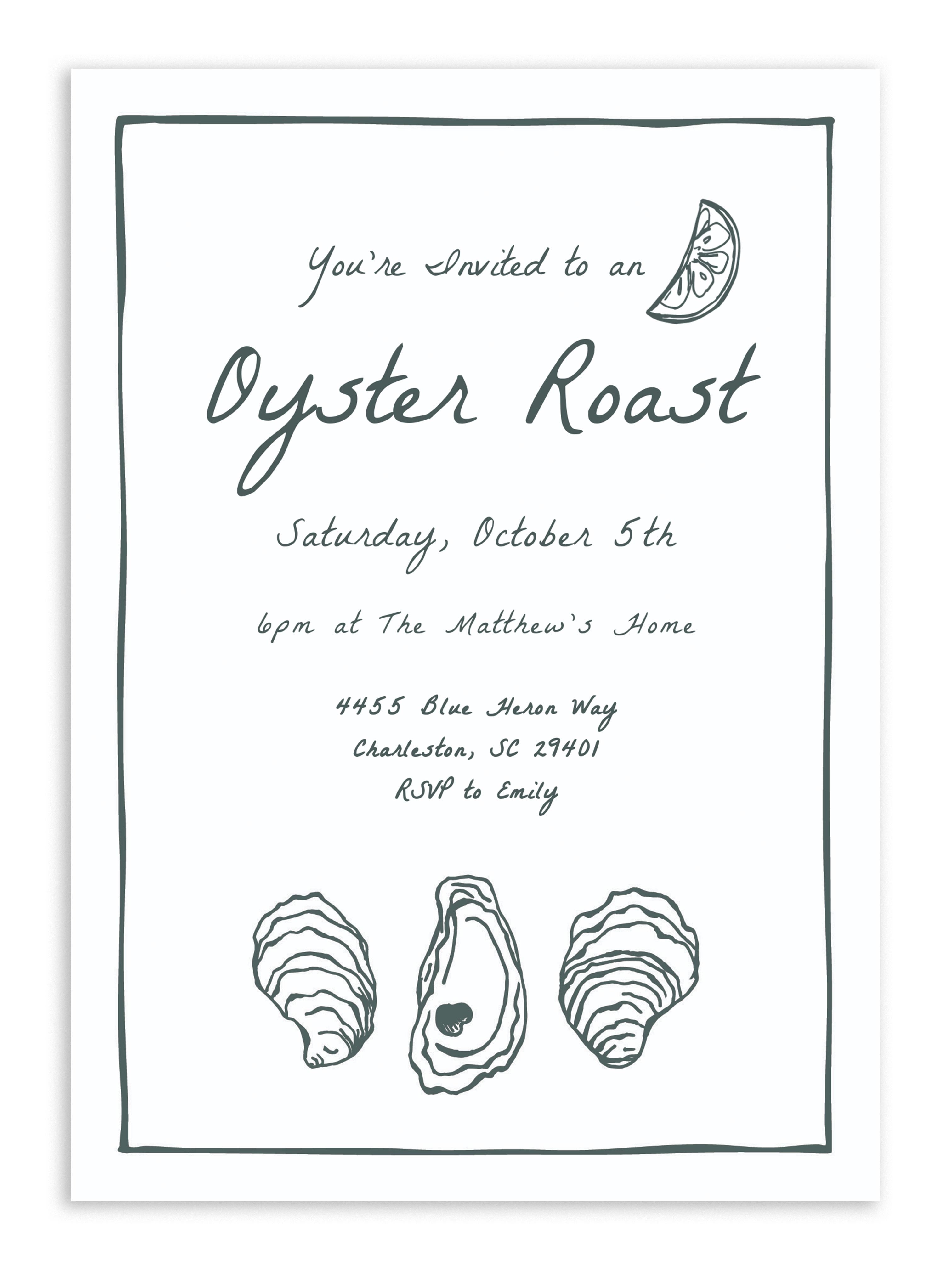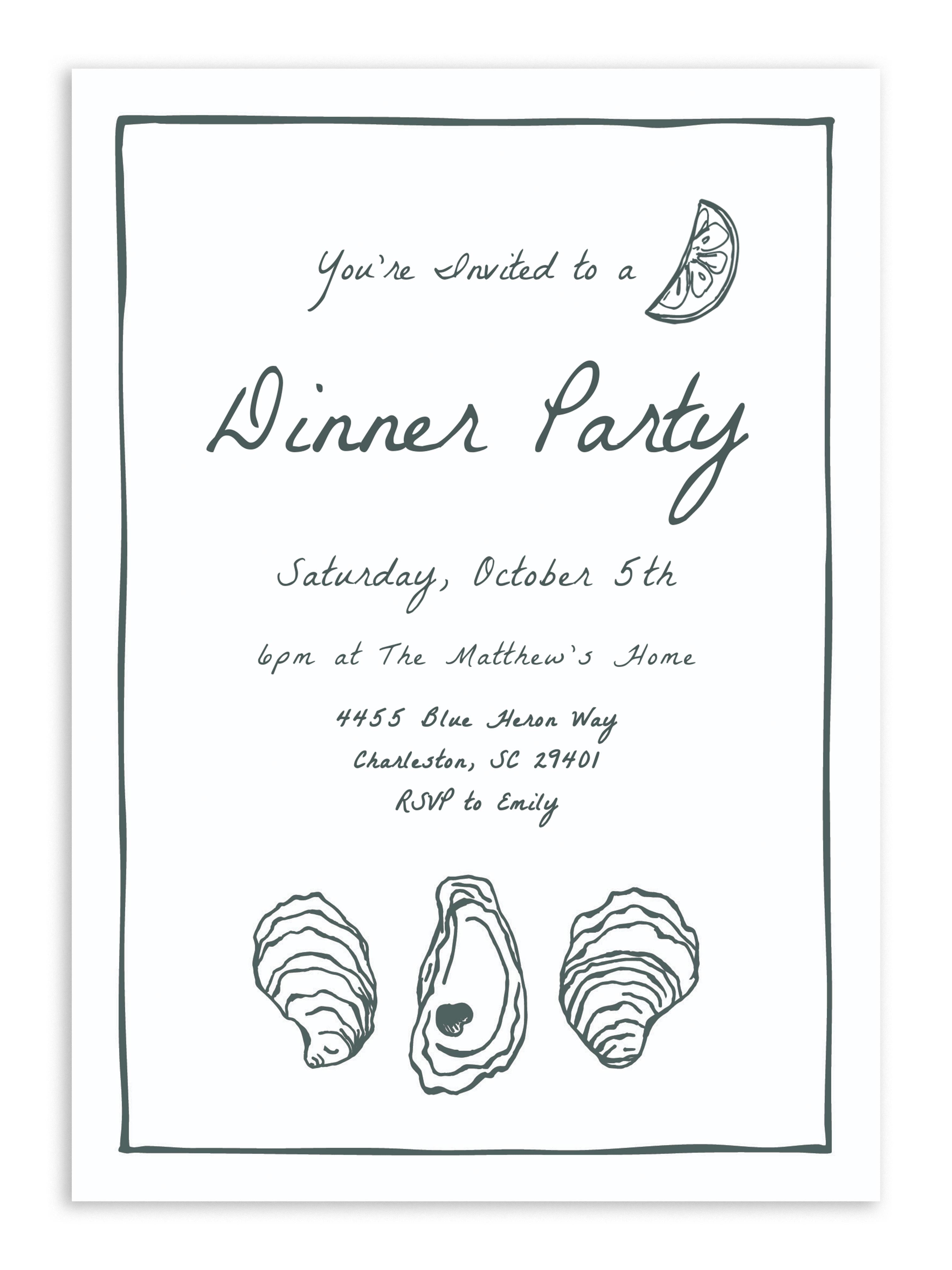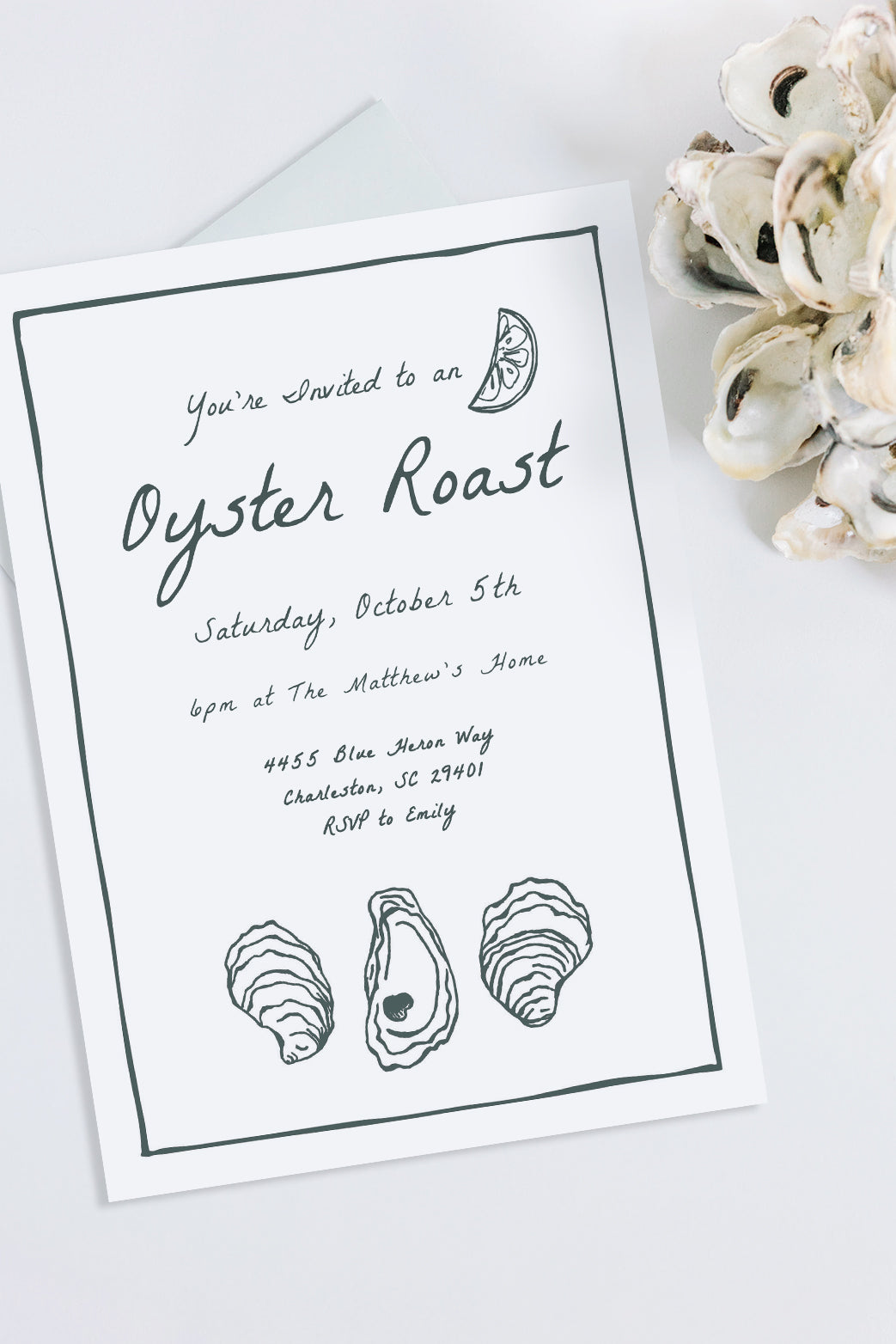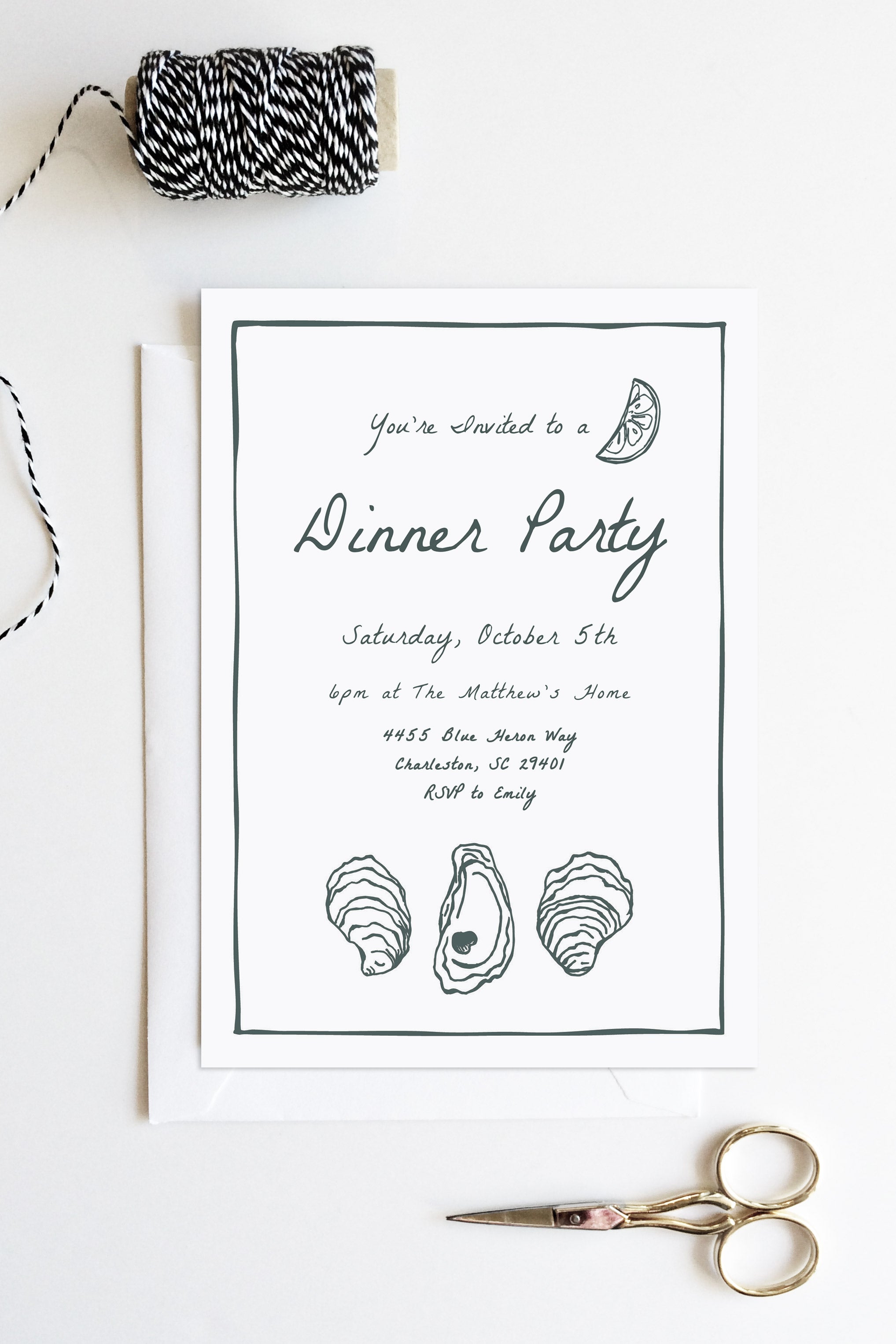 Perfect for a coastal-inspired dinner, oyster roast, seafood gathering, or elegant soirée, this invitation brings a touch of nautical sophistication to your event.