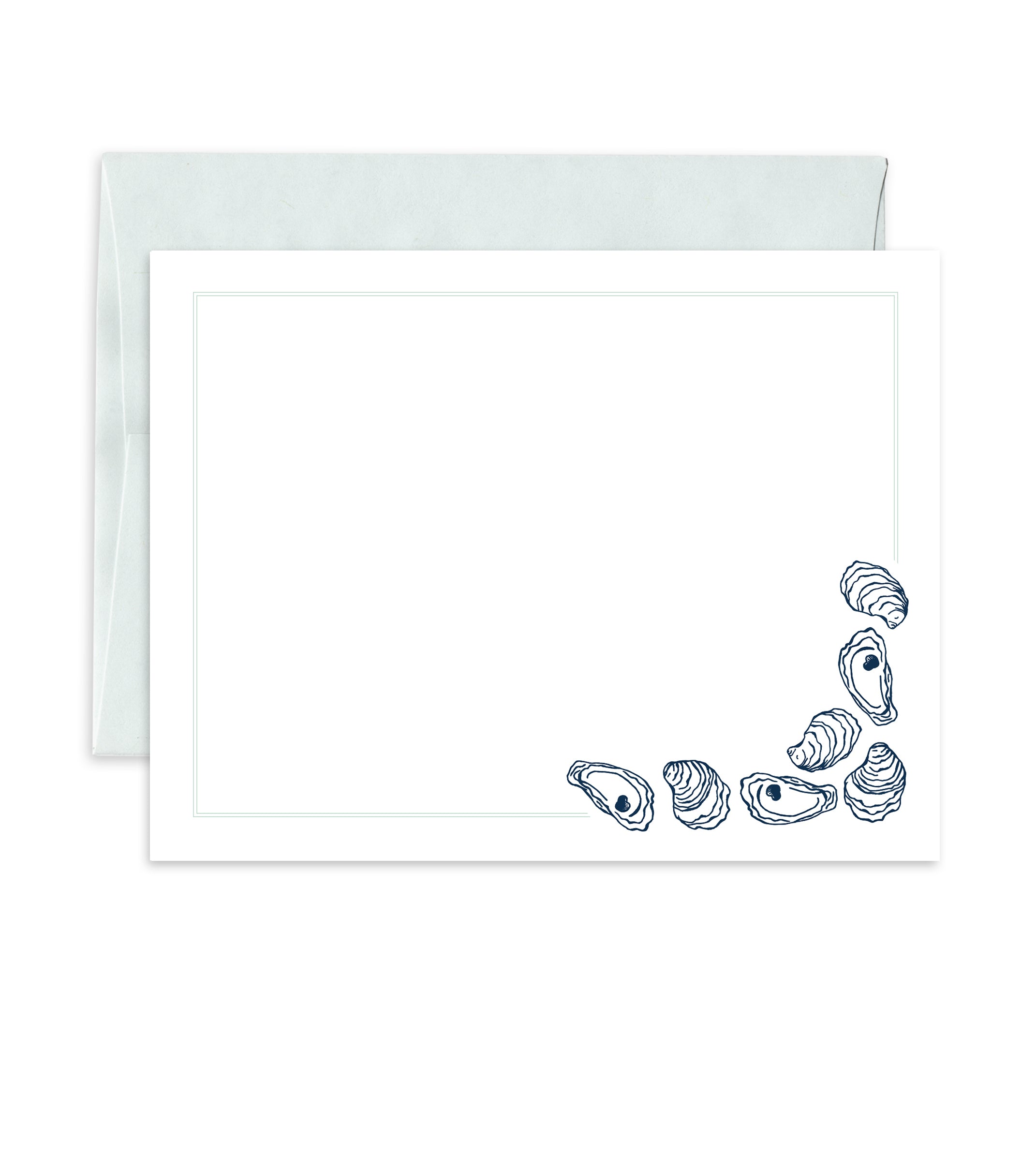 The Oyster Flat card is the perfect classic, coastal stationery! The line illustrations are a dark blue with a light blue accent trim around the border. You'll love using this stationery for your everyday needs -- thank you's, letters to say hi, love notes, and more!