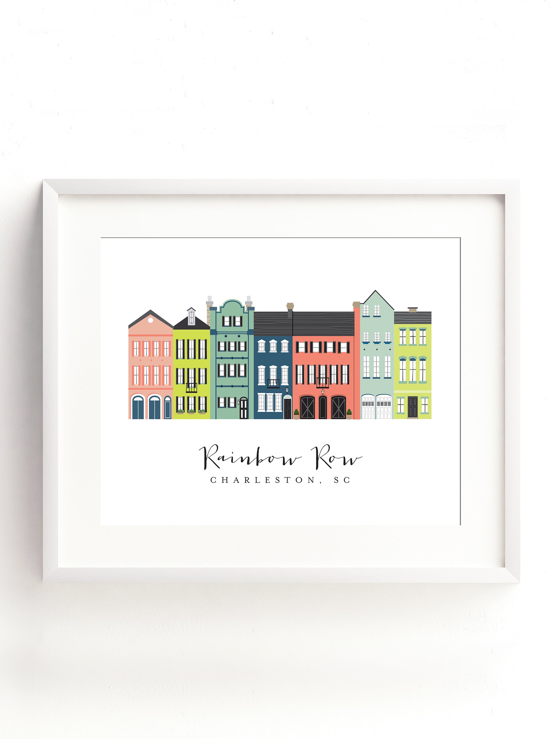 This fun, bold print features the famous and colorful row houses in downtown Charleston, SC.