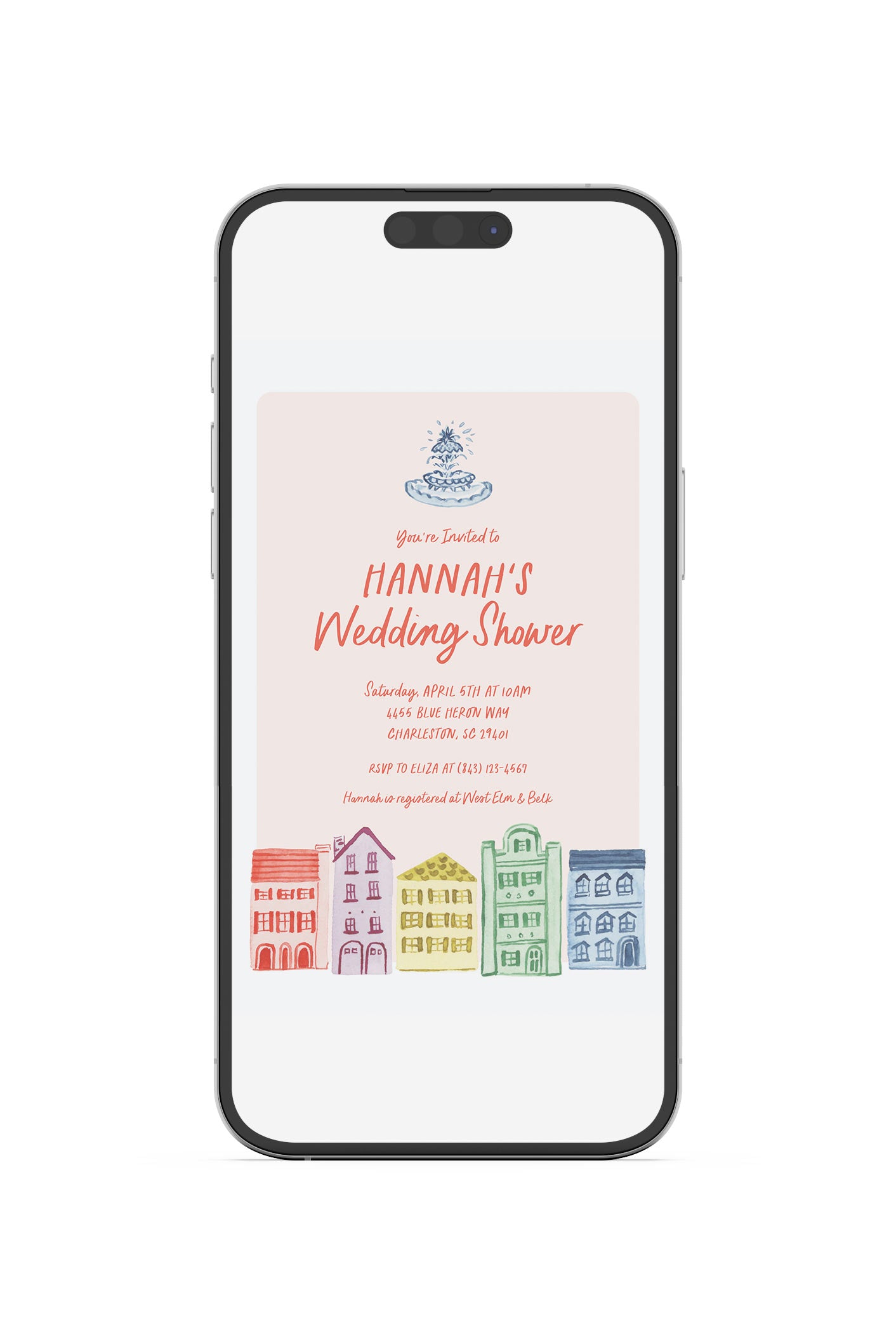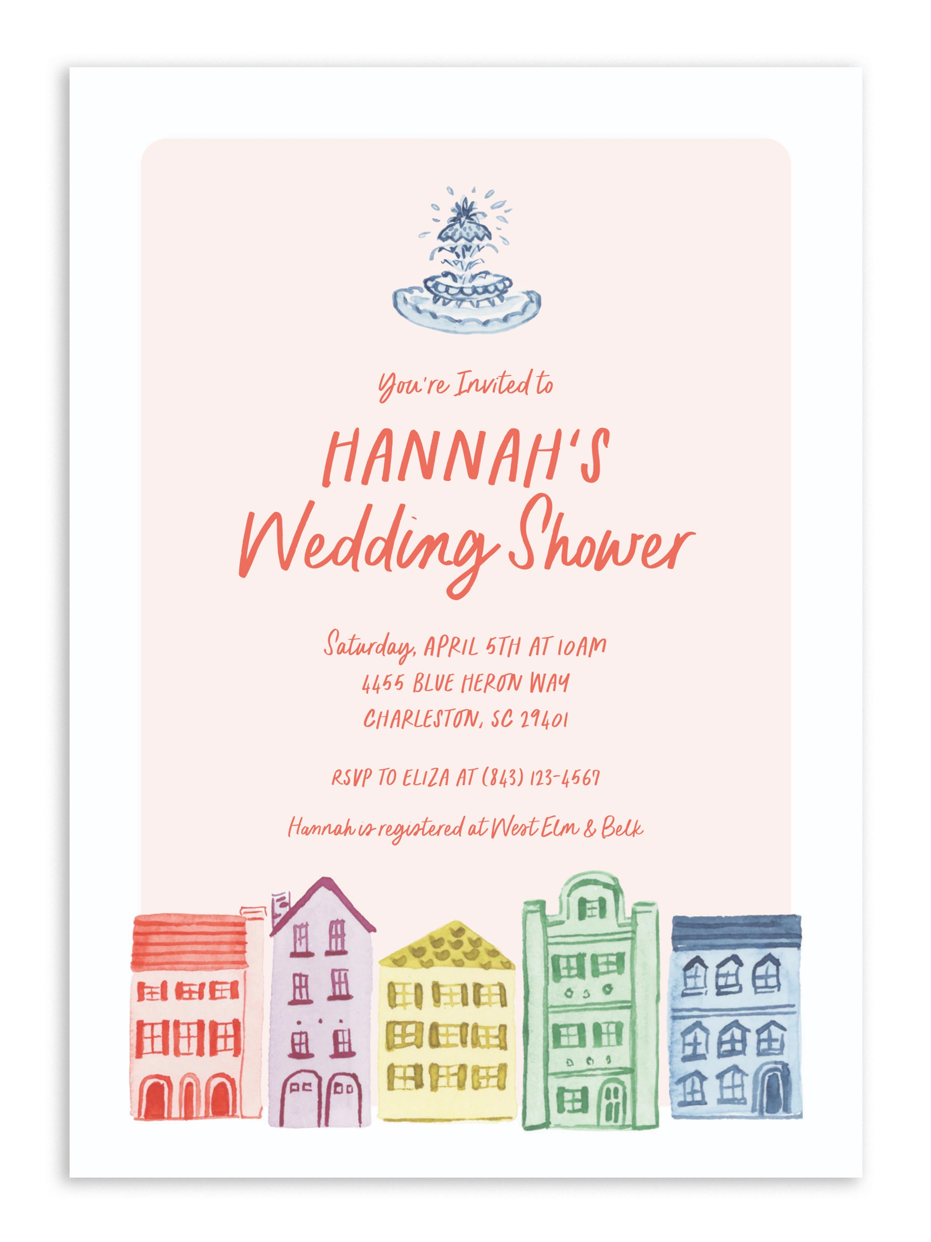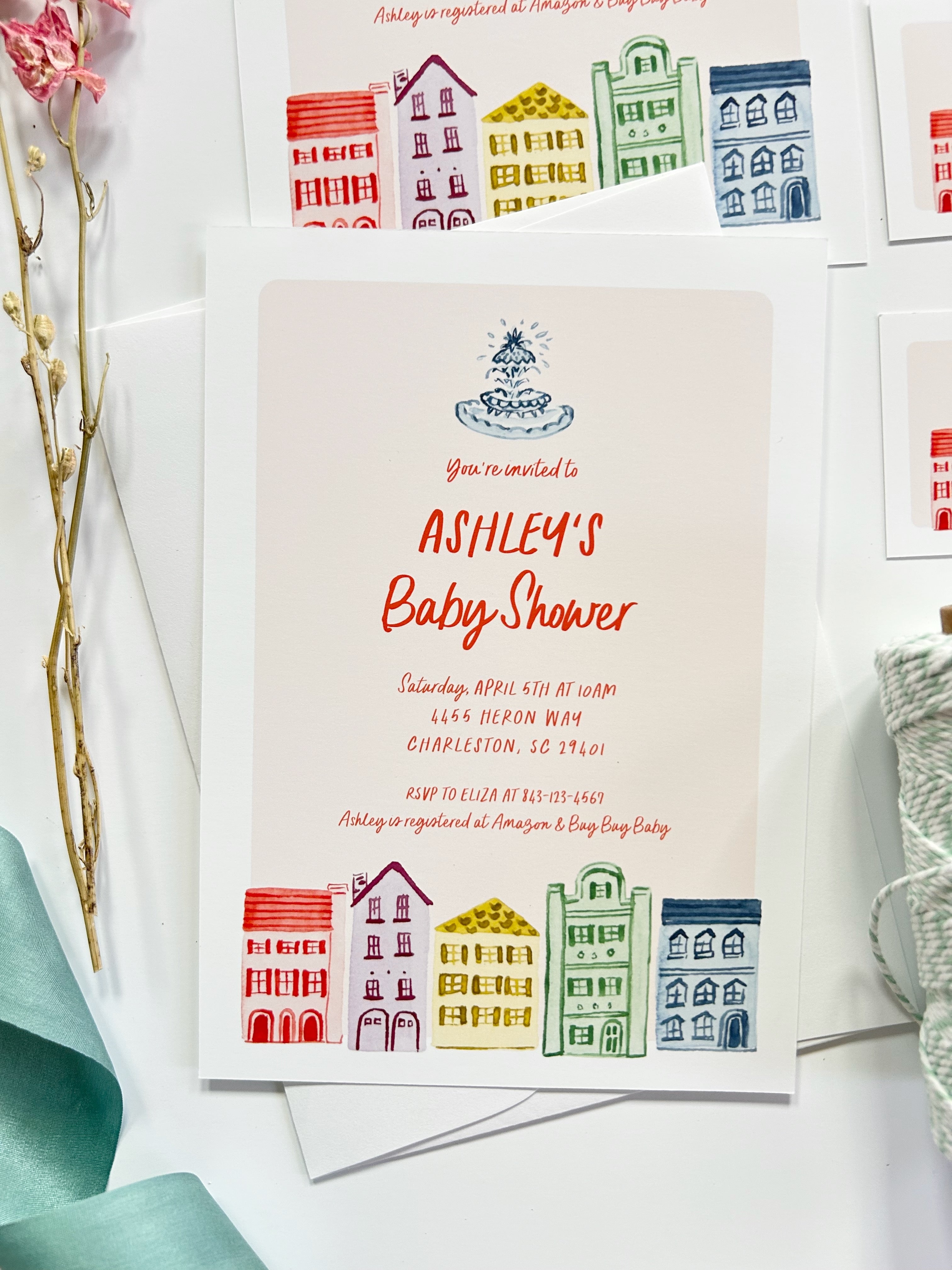 Inspired by the iconic Rainbow Row houses, this invitation evokes a sense of charm, whimsy, and sophistication, making it the perfect choice for weddings, baby showers, birthdays, or any event that deserves a touch of colorful Charleston charm.