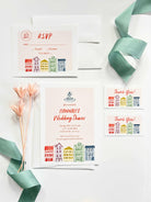 Inspired by the iconic Rainbow Row houses, this RSVP card evokes a sense of charm, whimsy, and sophistication, making it the perfect choice for weddings, baby showers, birthdays, or any event that deserves a touch of colorful Charleston charm.
